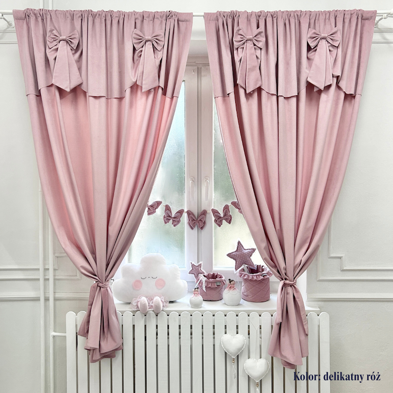 Aksamitne velvetowe zasłonki z kokardami do pokoju dziecka