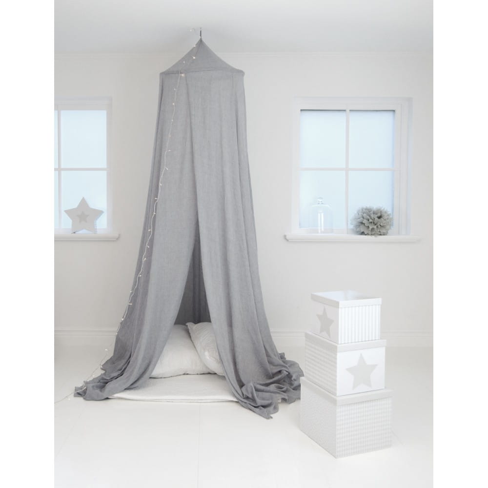 Bajeczny baldachim w kolorystyce jasno szarej to idealny dodatek dekoracyjny wyposażenia dziecięcych wnętrz. Śliwkowy róż to kolor, który idealnie pasuje do pokoju małej księżniczki, i większej damy - otula do snu niczym miękki obłoczek na niebie. Zamontowany nad łóżeczkiem może spełniać nie tylko funkcje dekoracyjne, ale również służyć jako moskitiera czy ochrona przed promieniami słonecznymi.
