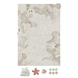 Zamień pokój swojego dziecka w dno oceanu i wypełnij go magicznymi oceanicznymi stworzeniami! Dywanik Seabed to marzycielski dywanik do zabawy, zawierający różne elementy inspirowane magicznym podmorskim krajobrazem, zamieszkałym przez rozgwiazdy i muszle skrywające perły. W delikatnych, naturalnych i pastelowych odcieniach dno oceanu jest reprezentowane przez obszary o różnych fakturach, które pobudzą wyobraźnię maluchów