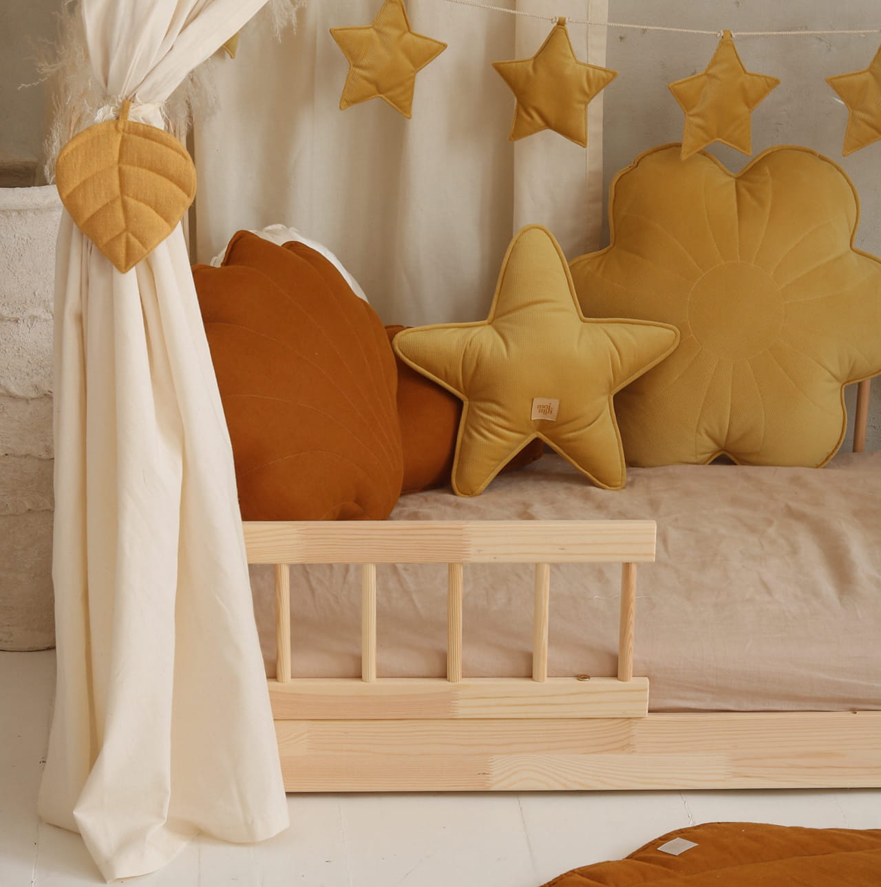 Baldachim składa się z dwóch oddzielnych zasłon, które można otwierać i zamykać według potrzeb. To umożliwia łatwe dostosowanie przestrzeni – od pełnego zaciemnienia do lekkiego przewiewu światła. Dodatkową atrakcją są zawieszki z velvetu w kształcie gwiazdki, które dodają uroku i sprawiają, że baldachim jest jeszcze bardziej atrakcyjny dla najmłodszych.