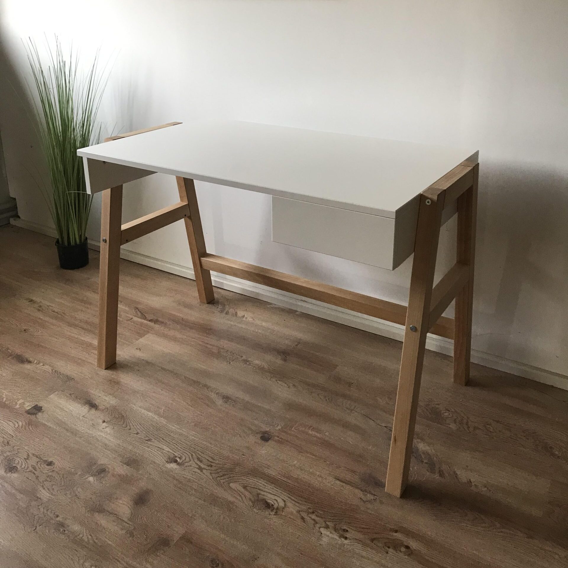 Biurko z drewna bukowego z regulowaną wysokością blatu to solidny i funkcjonalny mebel, który rośnie razem z dzieckiem. Blat można ustawić na wysokości 45, 60 lub 75 cm. Wykonane z litego drewna bukowego z polskich lasów i płyty MDF lakierowanej ekologiczną farbą. Wyposażone w praktyczną szufladę montowaną z dowolnej strony.
