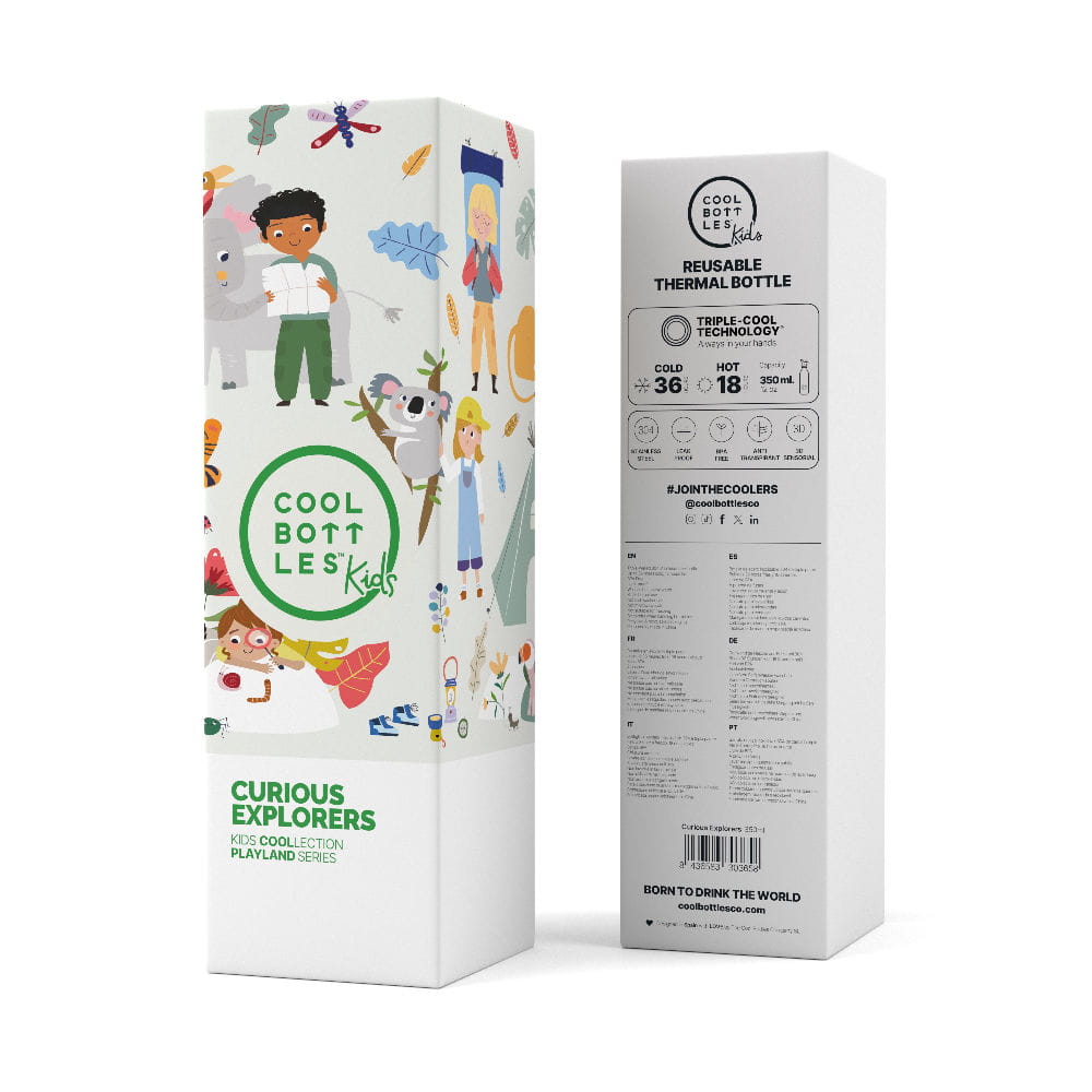 Termiczna butelka przeznaczona dla dzieci. Butelka ze stali nierdzewnej, będąca częścią pełnej żywych kolorów linii Cool Bottles ™ Kids.