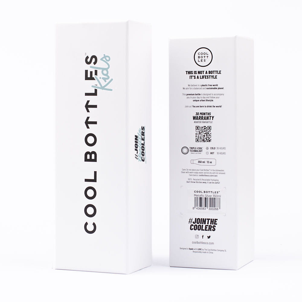 Termiczna butelka przeznaczona dla dzieci. Butelka ze stali nierdzewnej, będąca częścią pełnej żywych kolorów linii Cool Bottles ™ Kids.