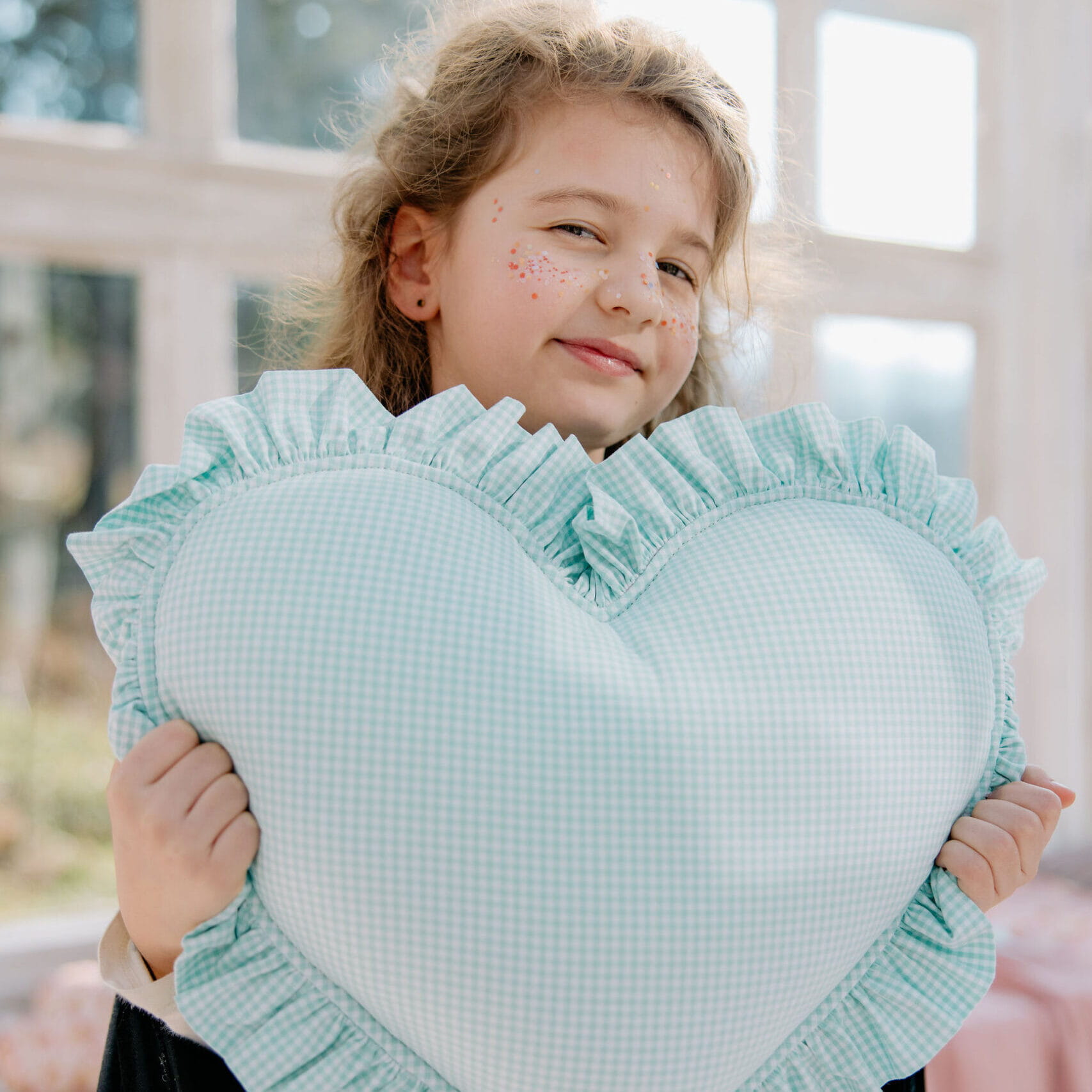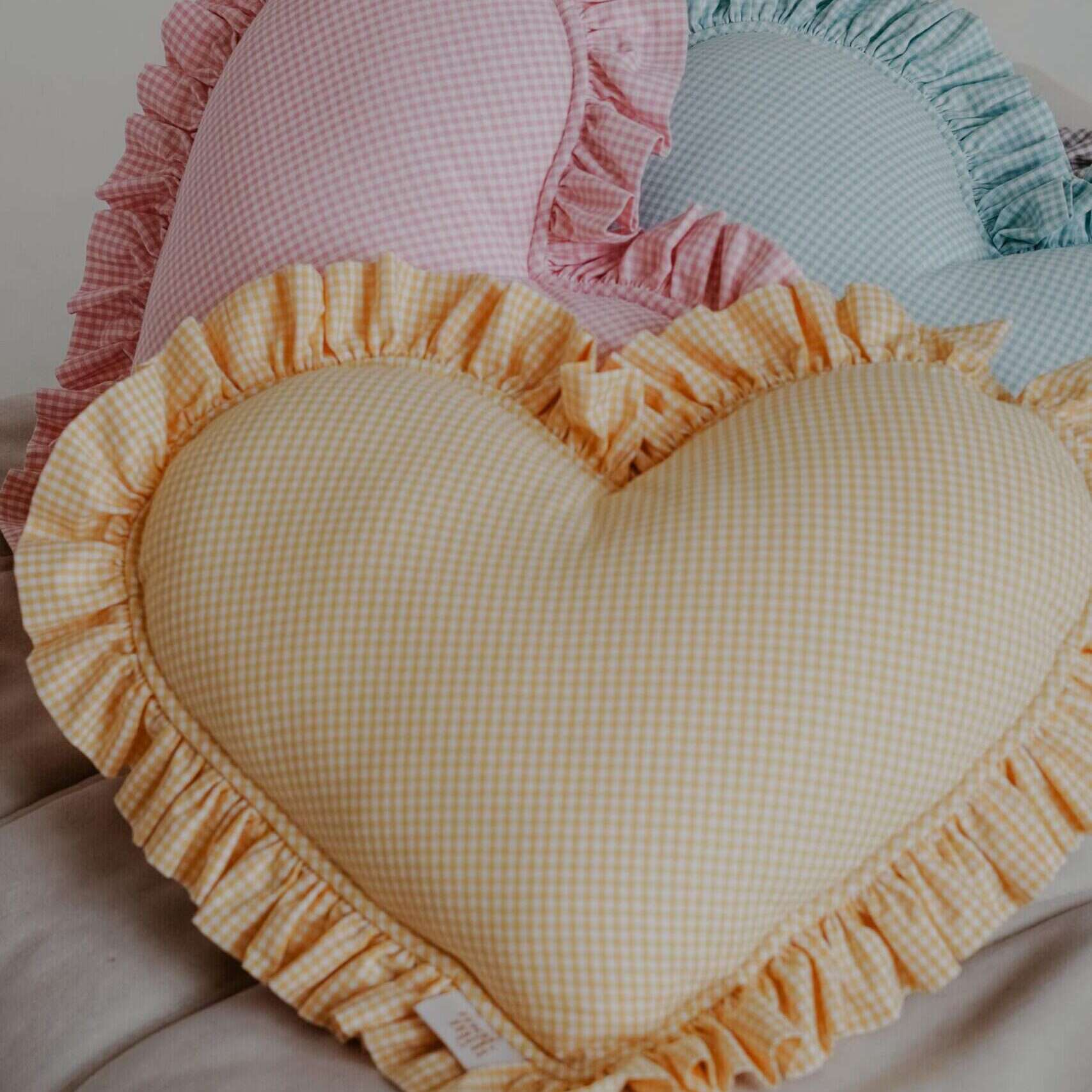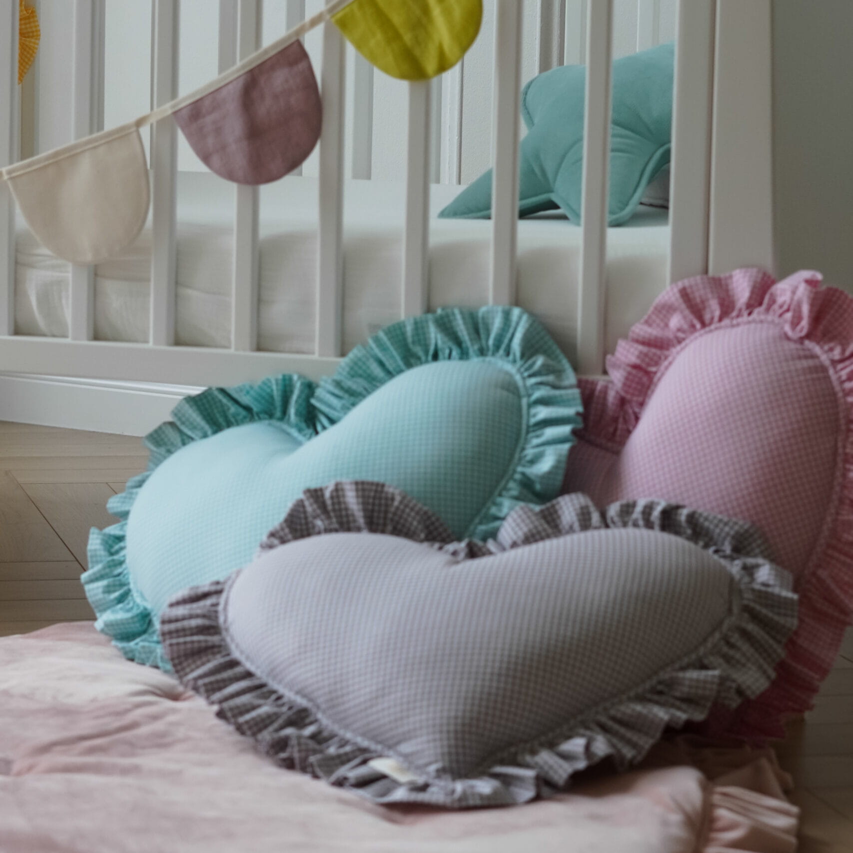 Poduszka w Kształcie Serca z Falbanką – Miętowe Krateczki