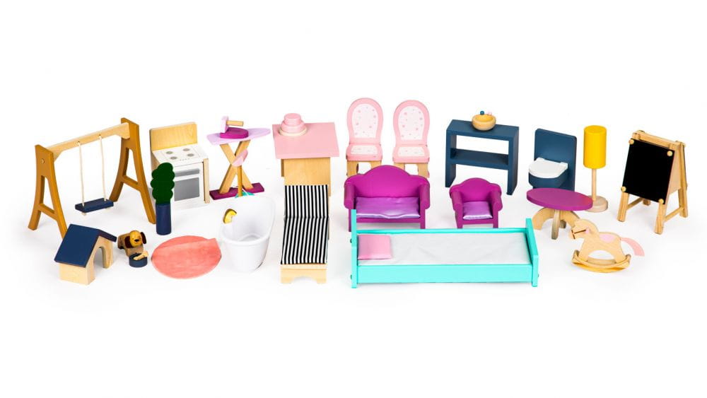 28 elementów wyposażenia – mebelki dopasowane do różnych pomieszczeń