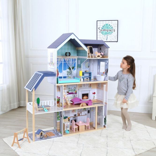 Drewniany domek dla lalek z mebelkami – bezpieczna zabawa w dużym stylu