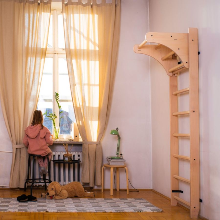 Drabinka gimnastyczna z regulowanym drążkiem do pokoju dziecka