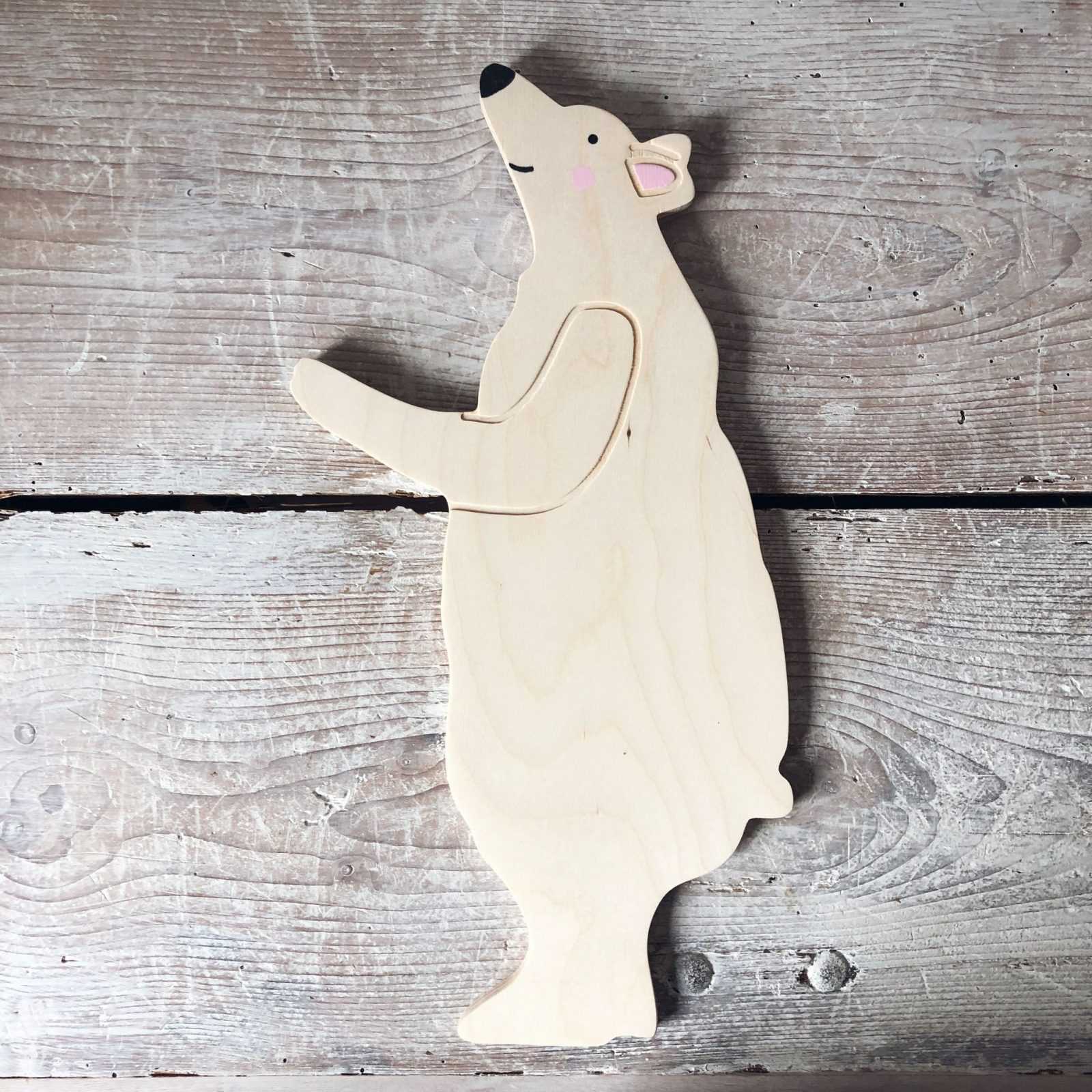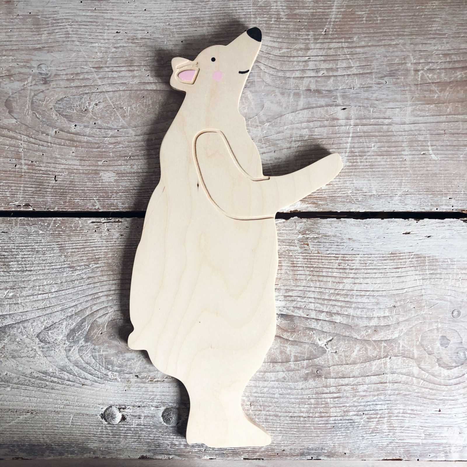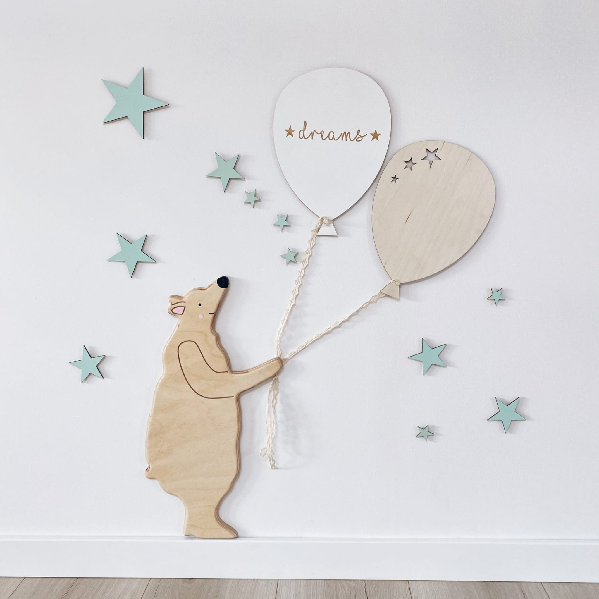 Uroczy, naturalny Miś Tedi w wersji S idealnie ociepla dziecięce wnętrze. Wykonany z frezowanej sklejki (6 mm), ręcznie malowany farbami ekologicznymi — dostępny z łapką po lewej lub prawej stronie; montaż bez wiercenia (masę montażową masz w zestawie).