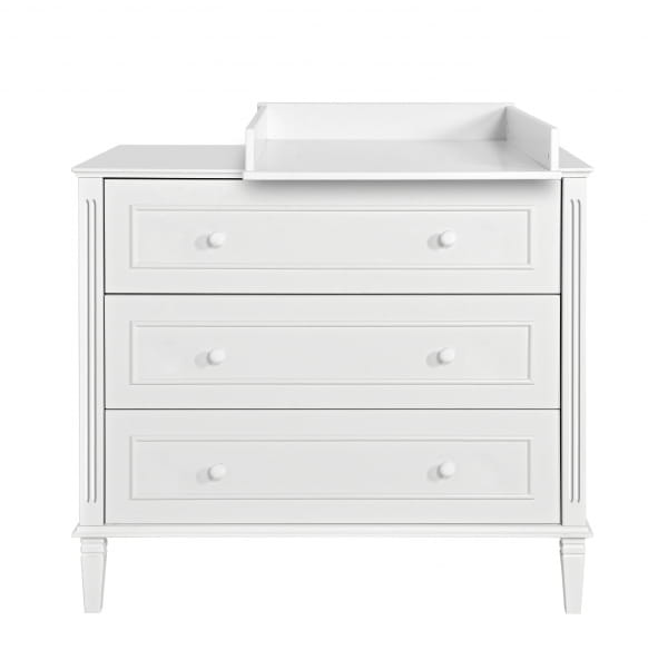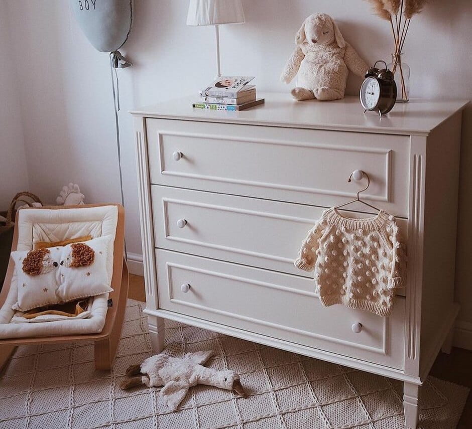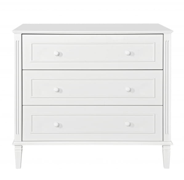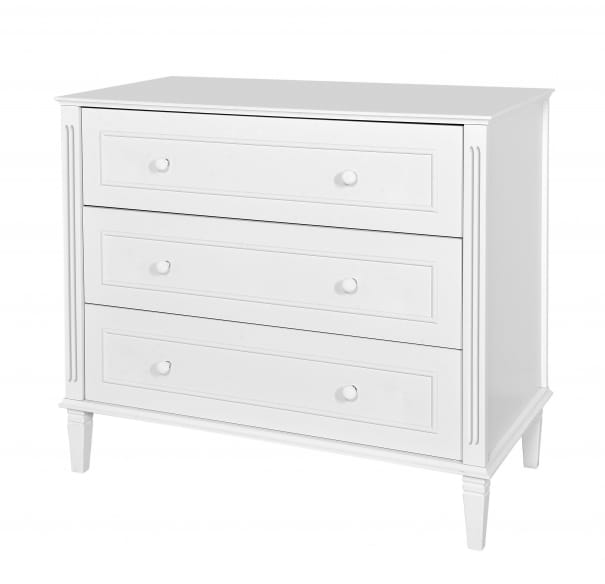 Elegancka i funkcjonalna komoda Bianka z przewijakiem do pokoju niemowlaka i przedszkolaka. Pojemne szuflady z cichym domykiem, bezpieczne materiały i zaokrąglone krawędzie. Możliwość montażu przewijaka, który po demontażu zmienia komodę w praktyczny mebel do przechowywania ubranek i zabawek.