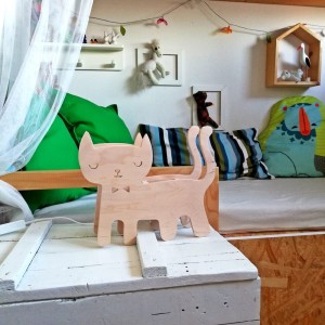 Drewniana Lampka Nocna dla dzieci - Kotek