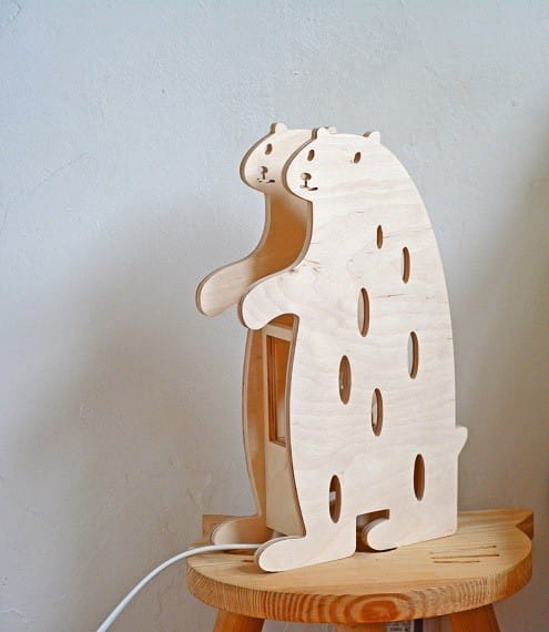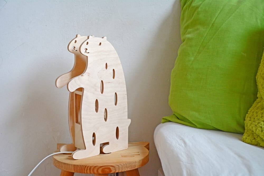 Urocza drewniana lampka nocna w kształcie Misia idealna do pokoju Maluszka! Wykonana z ekologicznych materiałów.