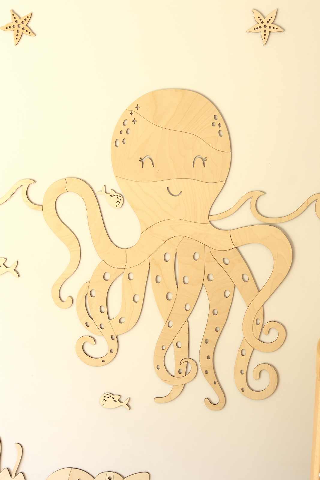 Drewniana Ośmiornica – Dekoracja do Pokoju z Motywem Oceanu