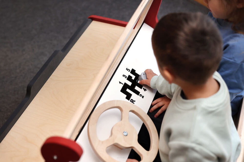Ciężarówka została stworzona z myślą o wszechstronnym rozwoju dzieci – ruchoma kierownica, skrzynia biegów oraz tylne siedzenie na platformie inspirują do twórczej zabawy, odgrywania ról i aktywności z rówieśnikami. To nie tylko frajda, ale także sposób na rozwijanie wyobraźni, motoryki i zdolności poznawczych.
