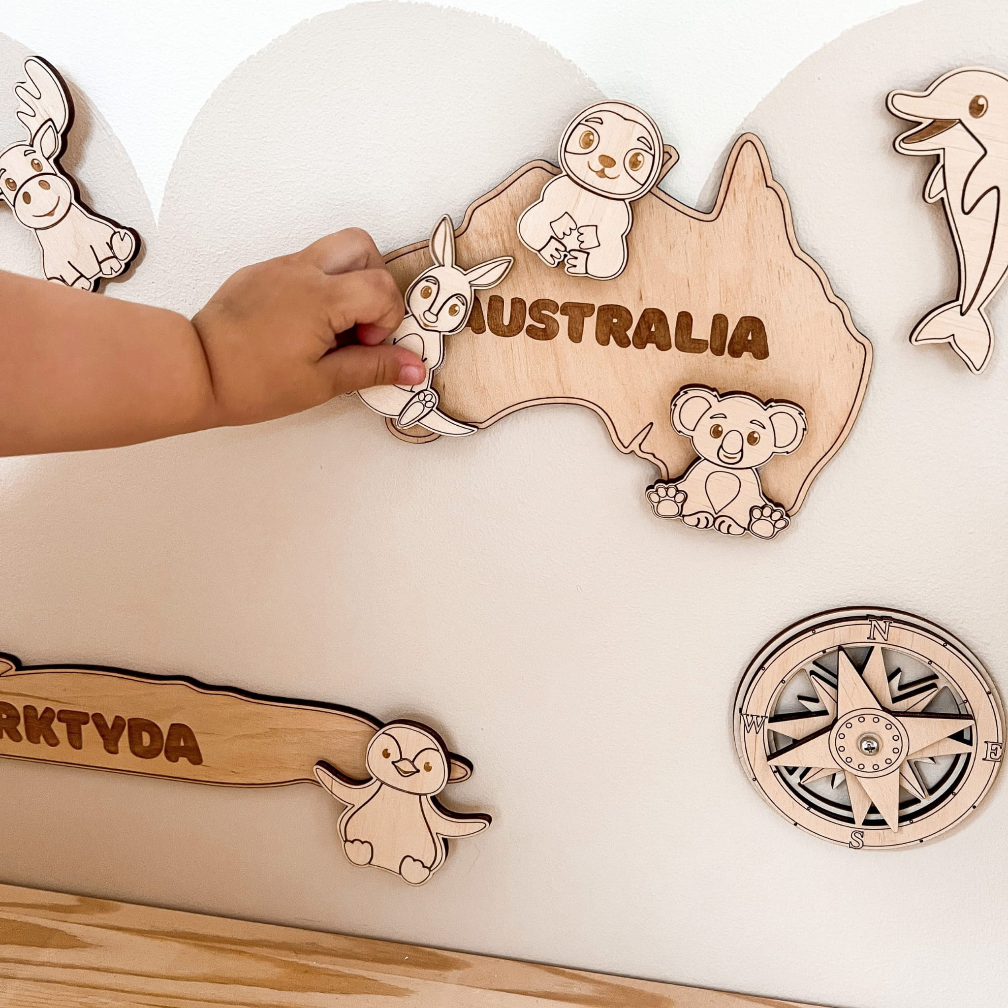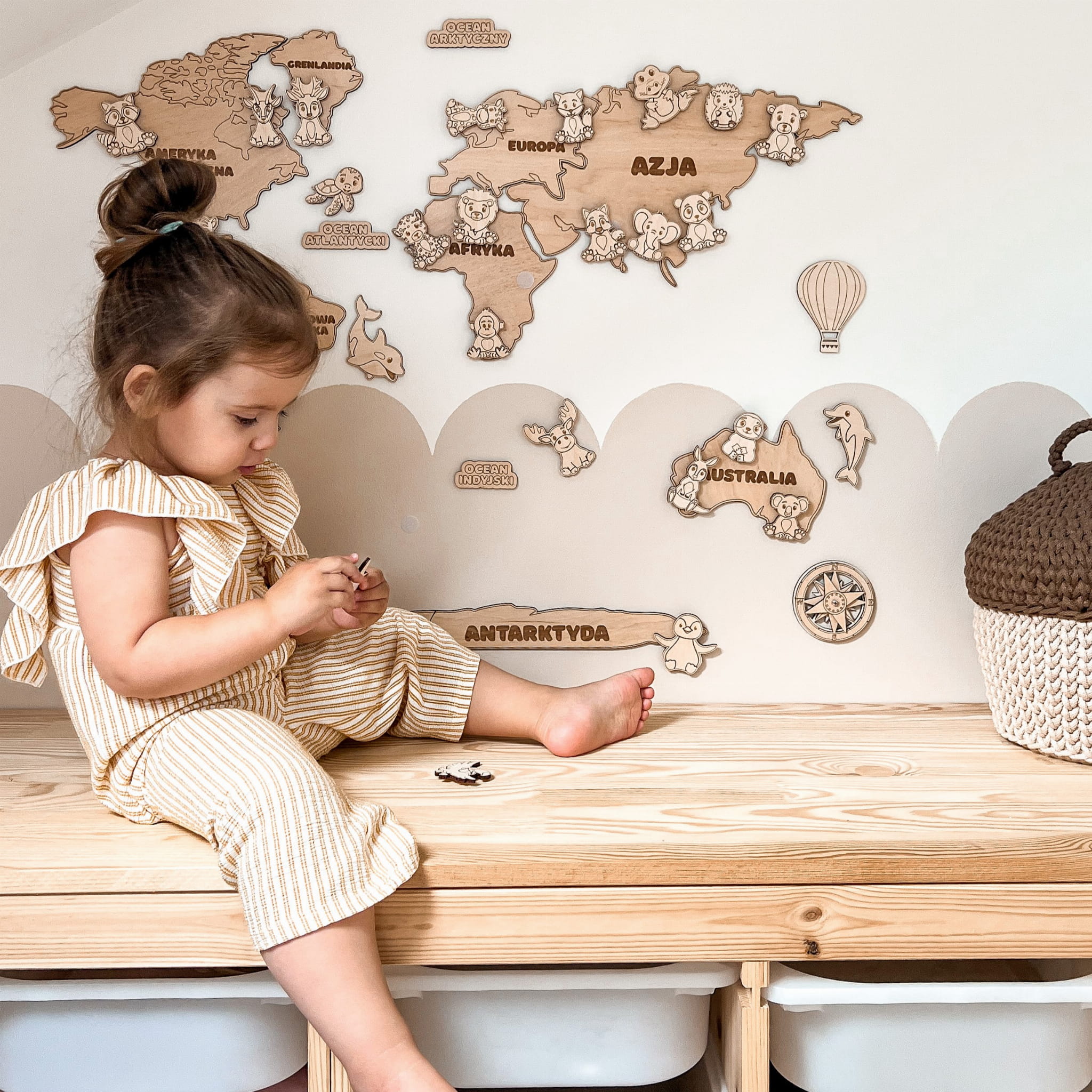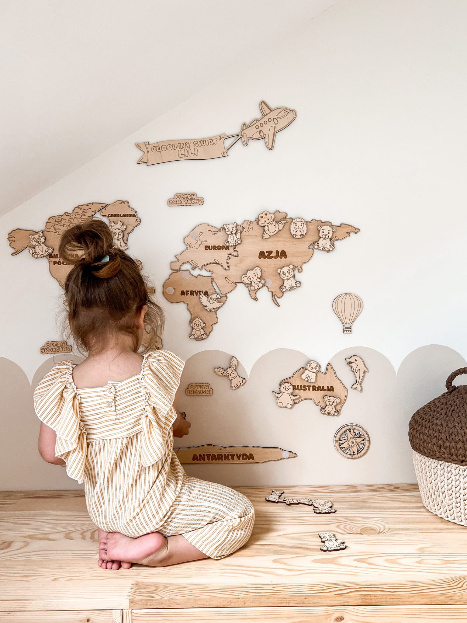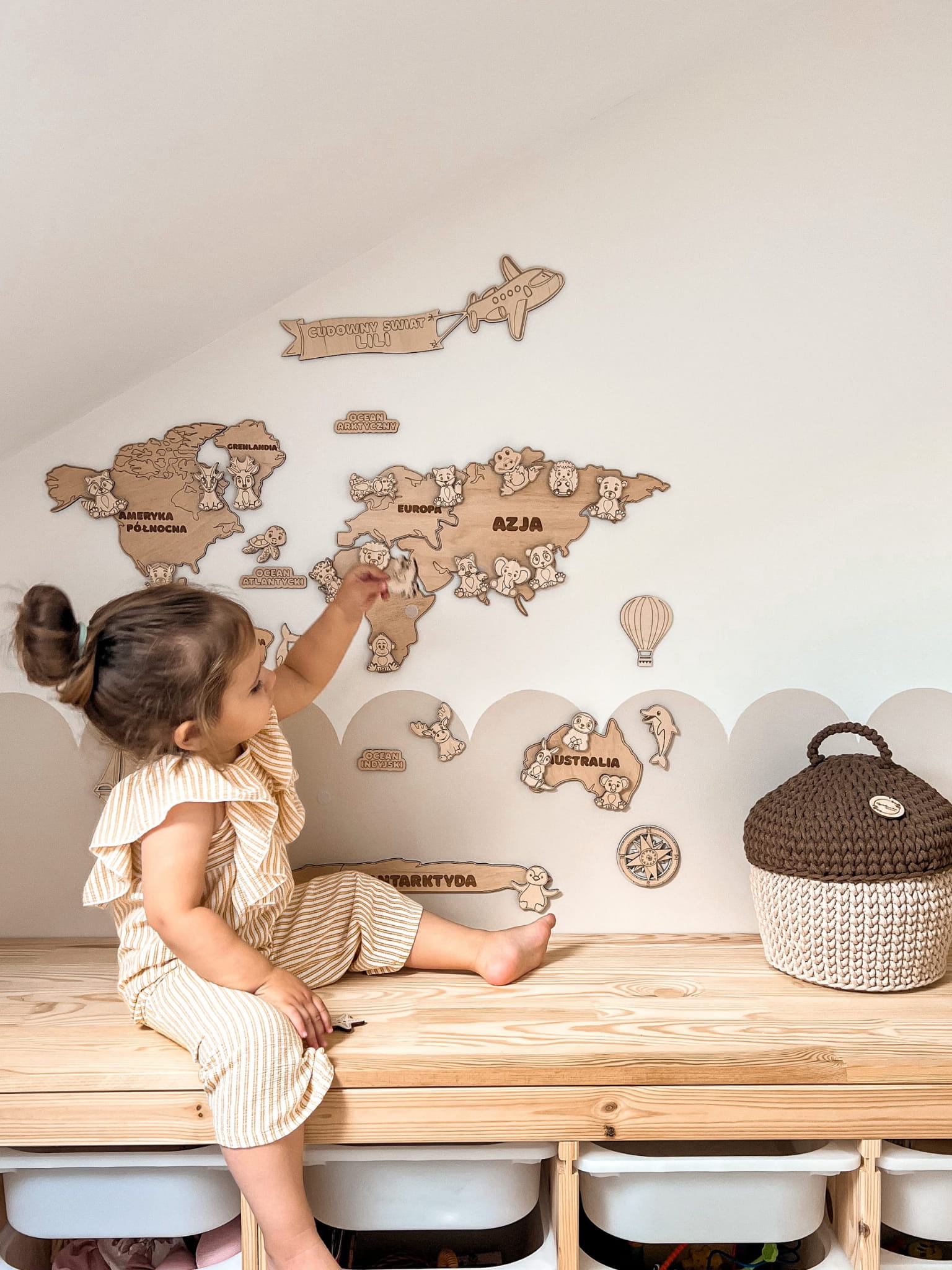 Drewniana Mapa Świata idealna do pokoju dziecka.
