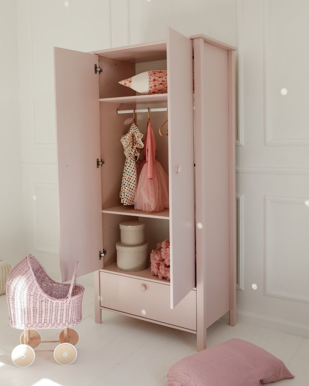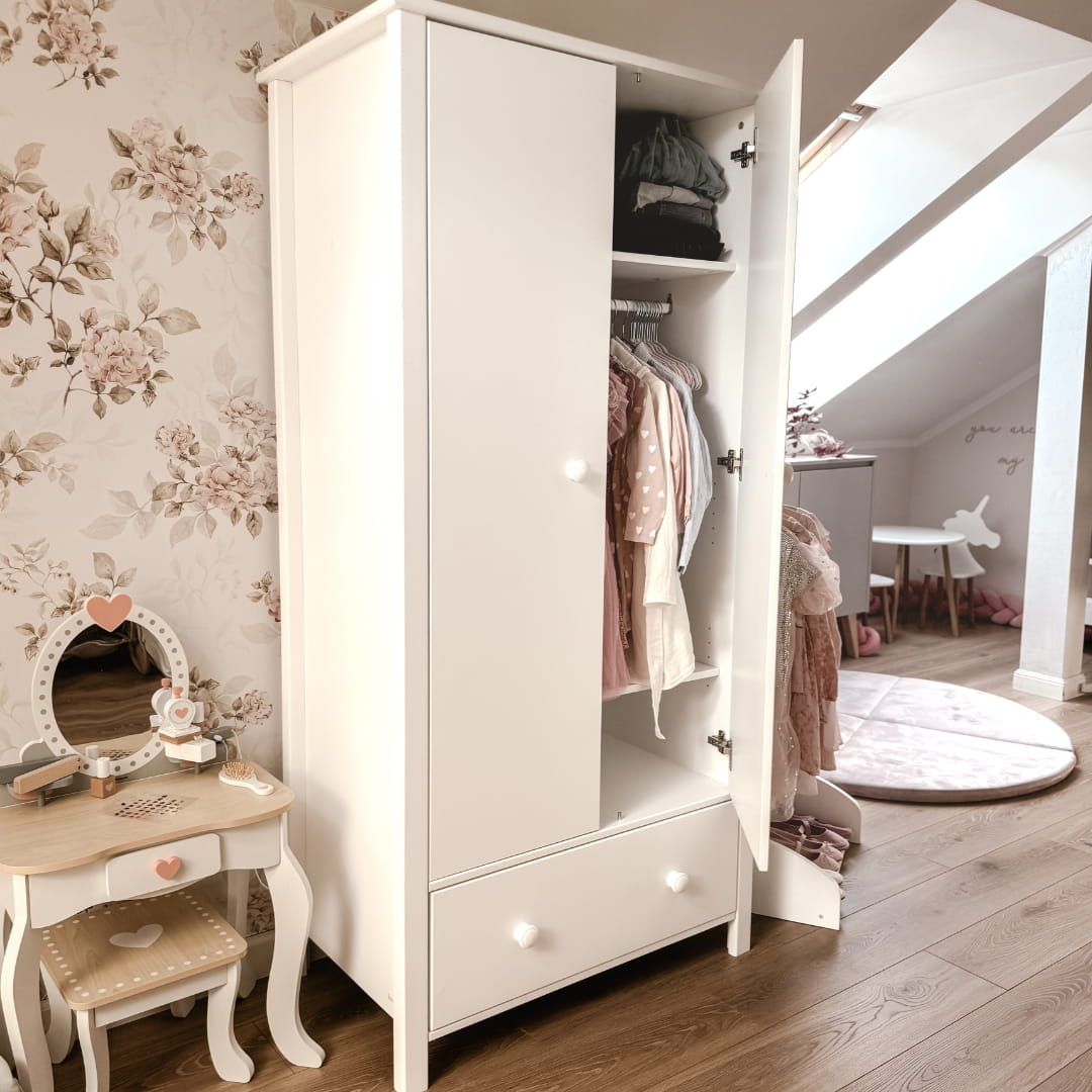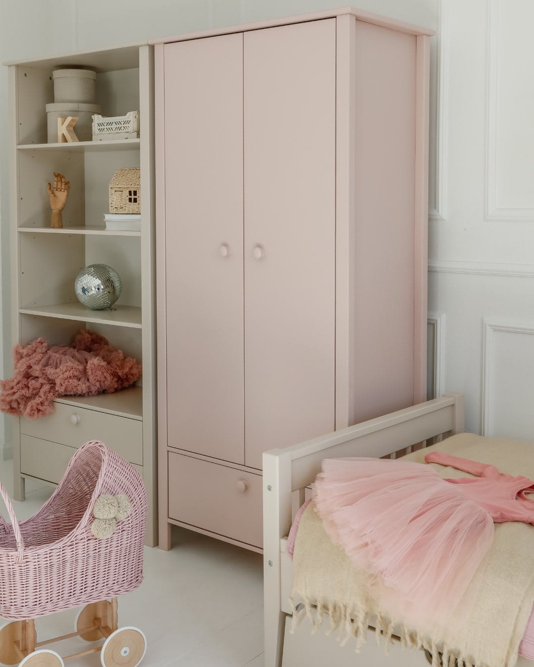 Szafa Collet łączy elegancję i praktyczność, oferując przestrzeń do przechowywania i ponadczasowy wygląd. Jest to idealny wybór dla rodziców, którzy poszukują mebli dziecięcych, które będą rosnąć razem z dzieckiem, jednocześnie zachowując styl i funkcjonalność.