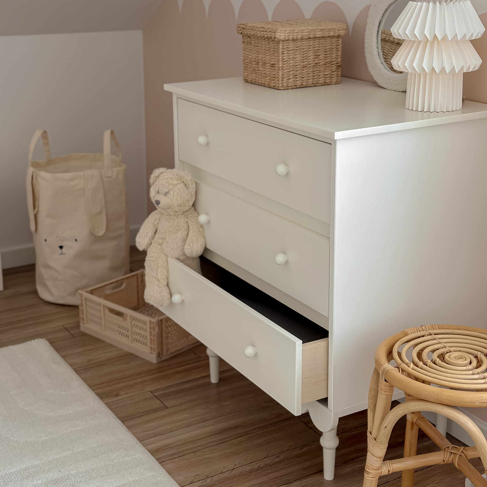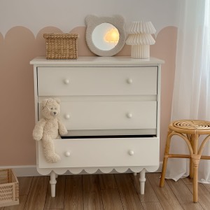 Komoda Babushka z 3 szufladami to wyjątkowy mebel w stylu retro, który łączy estetykę i funkcjonalność, doskonale wpasowując się w potrzeby dziecięcego pokoju.