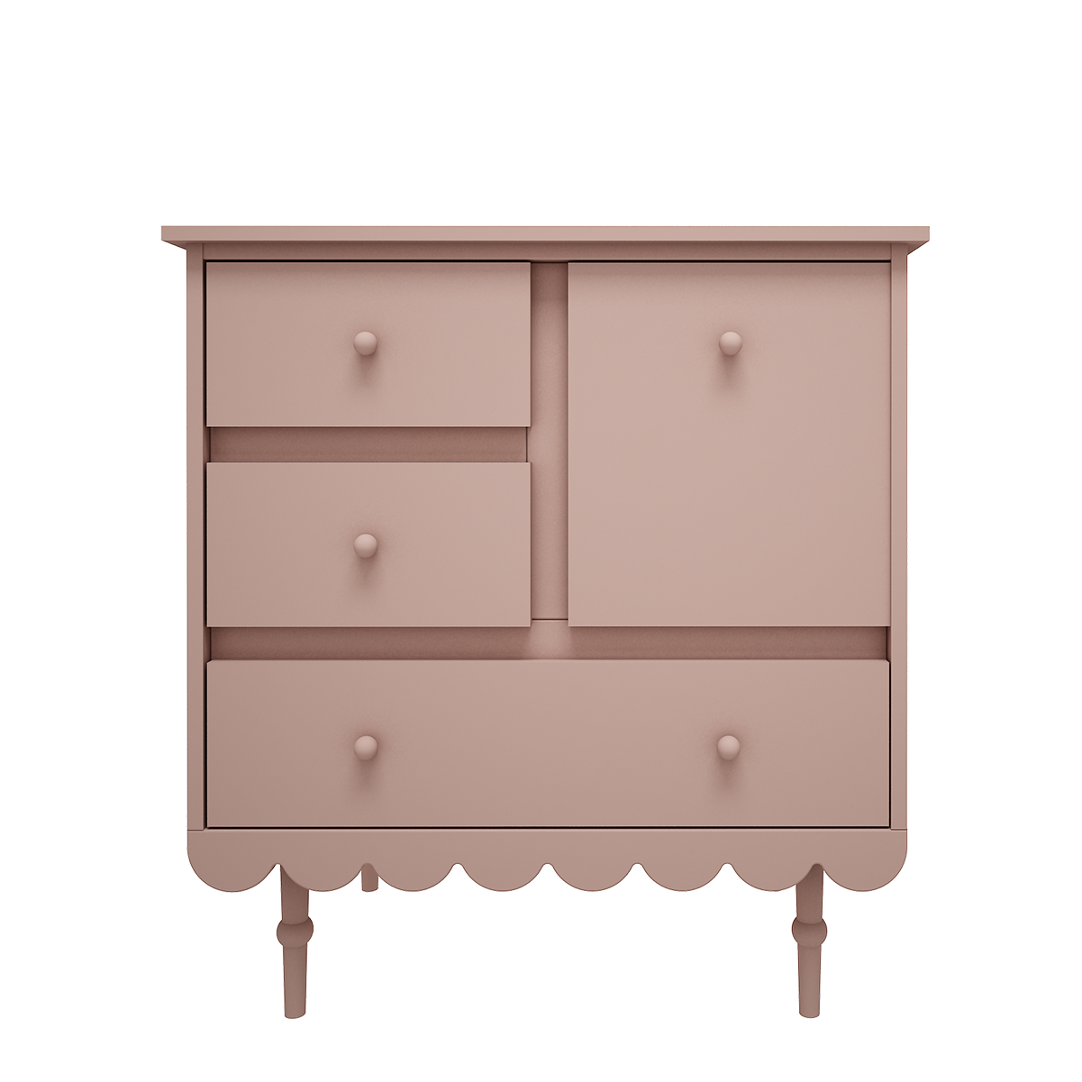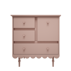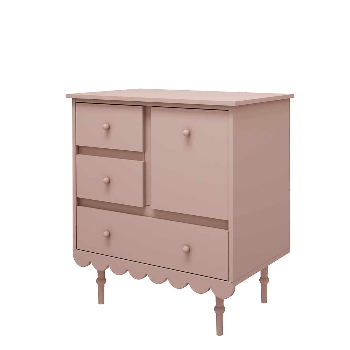 - Uniwersalna estetyka: Delikatny różowy kolor (NCS S 2020 - Y80R) sprawia, że komoda doskonale pasuje do różnych stylów wnętrz do pokoju dziewczynki.