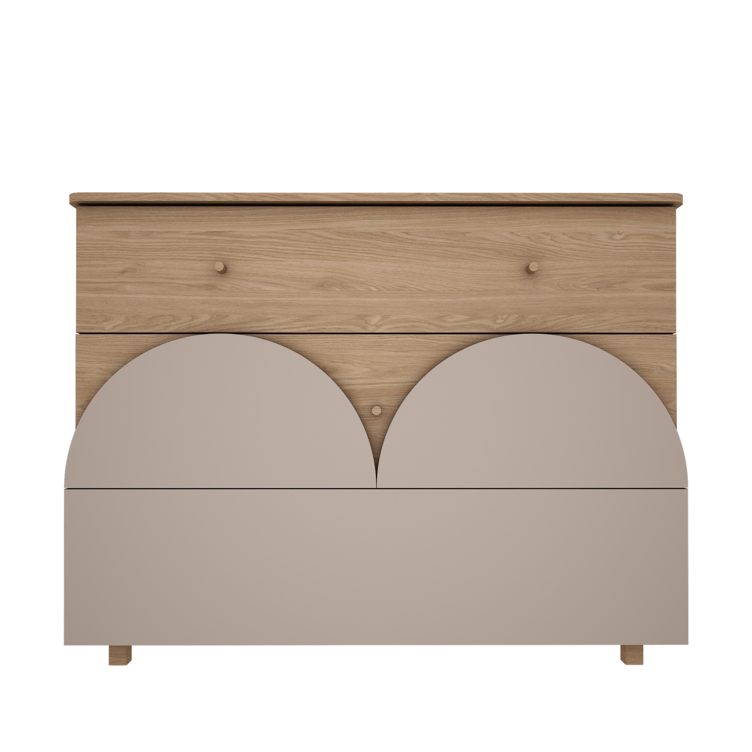 Drewniana komoda dziecięca Bloom posiada trzy przestronne szuflady, które idealnie nadają się do przechowywania ubrań, książek, akcesoriów i dziecięcych drobiazgów. -