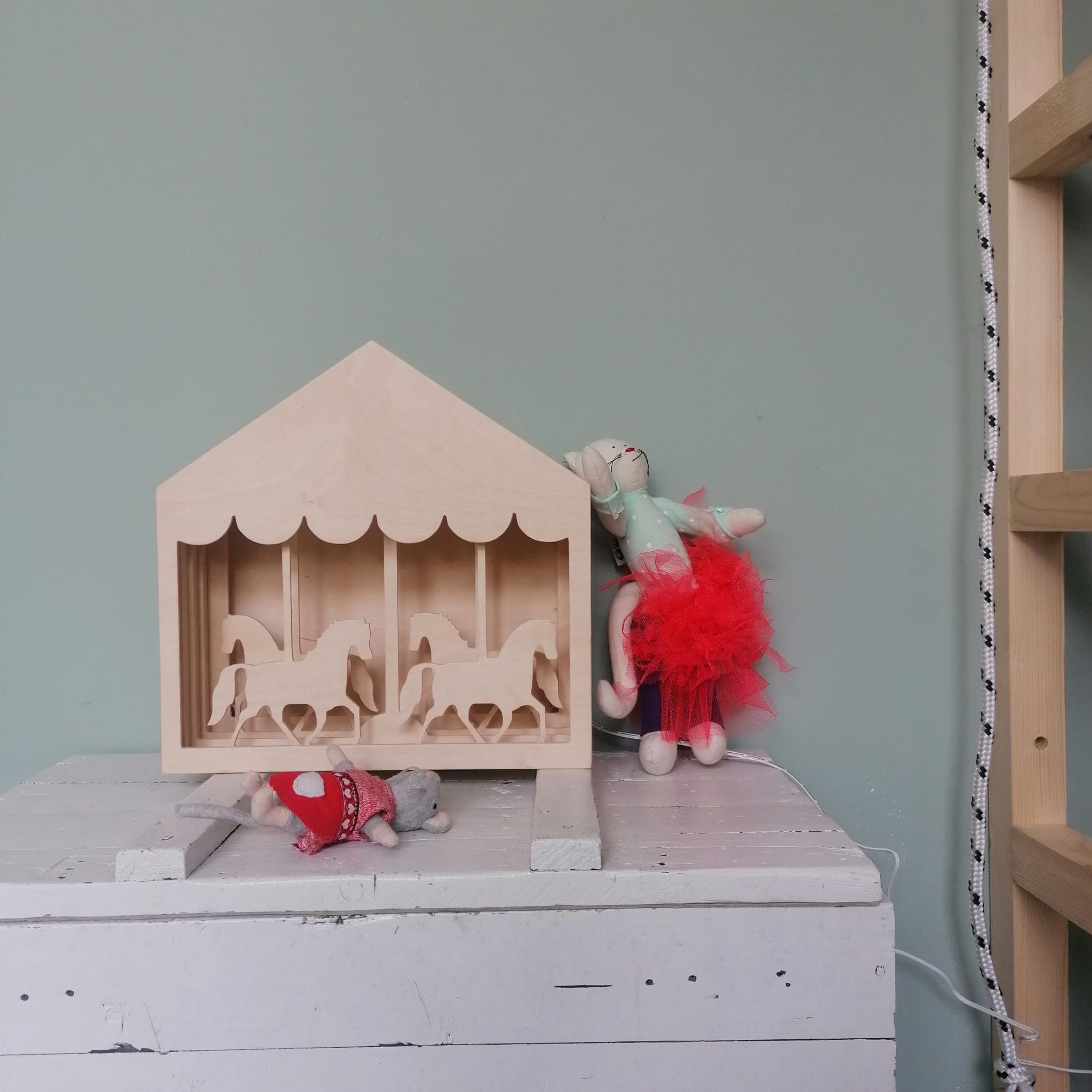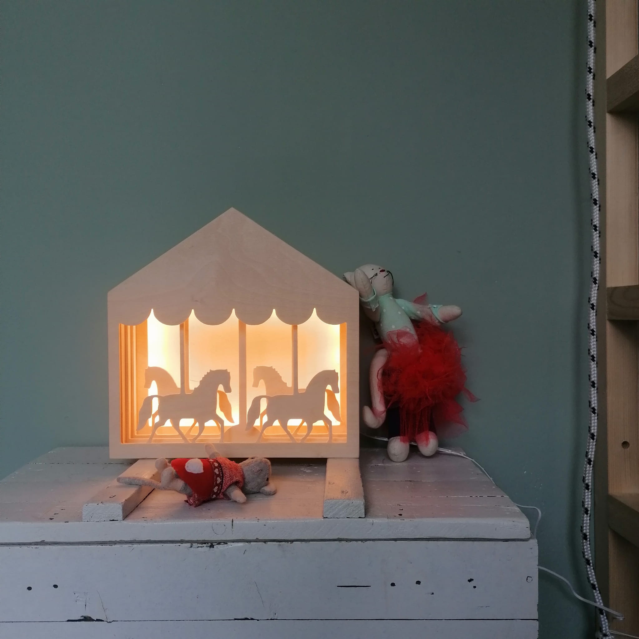 Urocza drewniana lampka ożywi każdy pokoik maluszka.