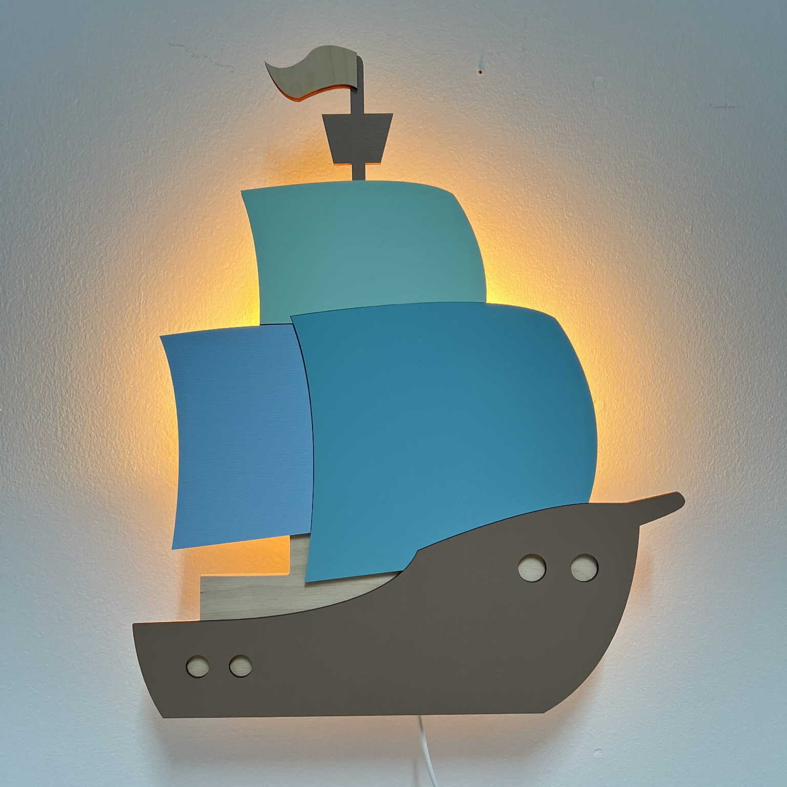 Drewniana lampka nocna "Statek Morski" – marynistyczna dekoracja do pokoju dziecka