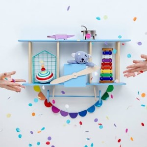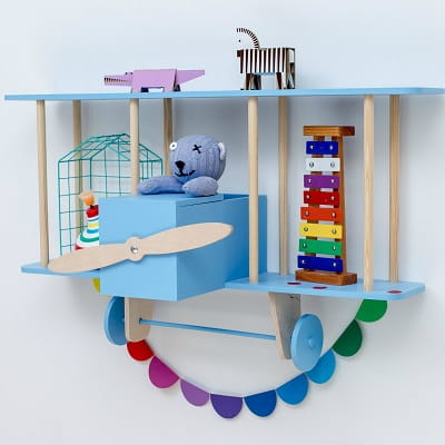 Drewniana półka do pokoju dziecięcego Samolot Niebieska