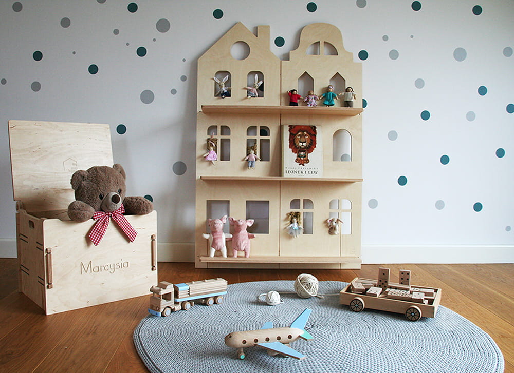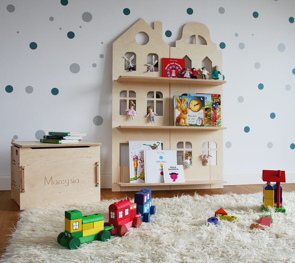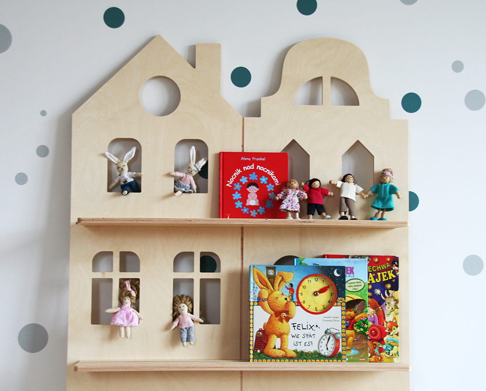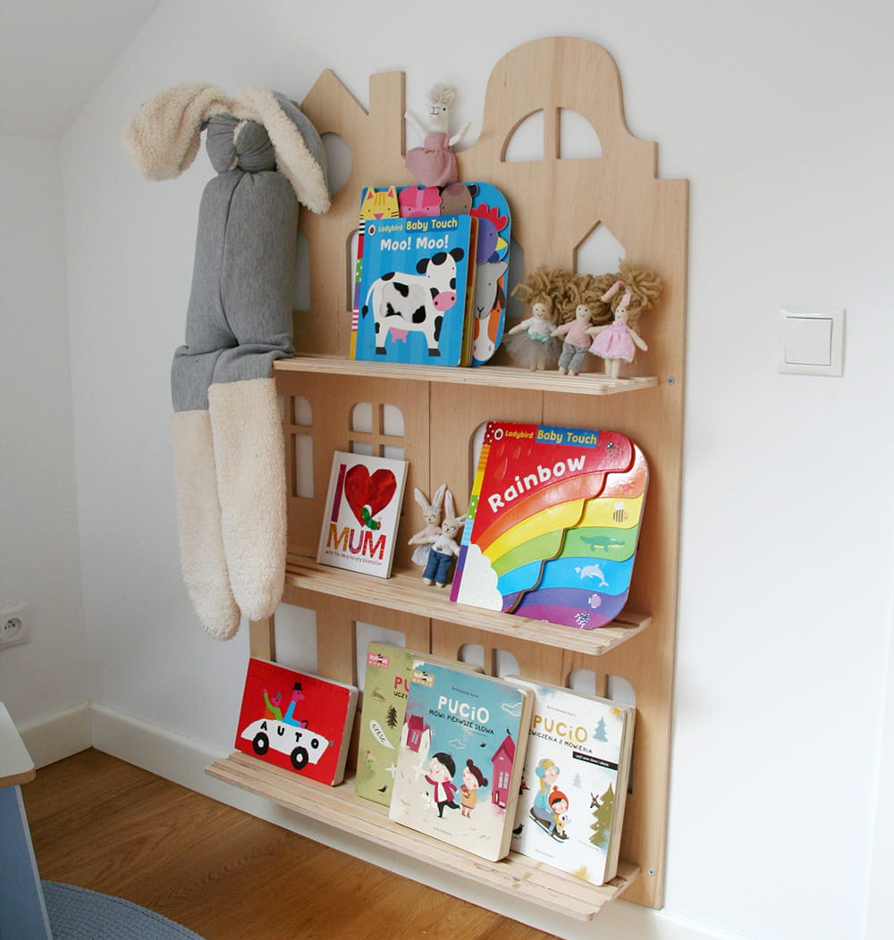 Półka na książki Otwarta, wisząca półka na książki i bibeloty malucha. Dzięki niej ulubione bajki można mieć na wyciągnięcie ręki. Mebel o trzech kondygnacjach nadaje się do eksponowania frontu książek. Jest utrzymany w stylistyce Parawanu Wielofunkcyjnego. Całość można montować do ściany przy pomocy dołączonych do zestawu kołków.