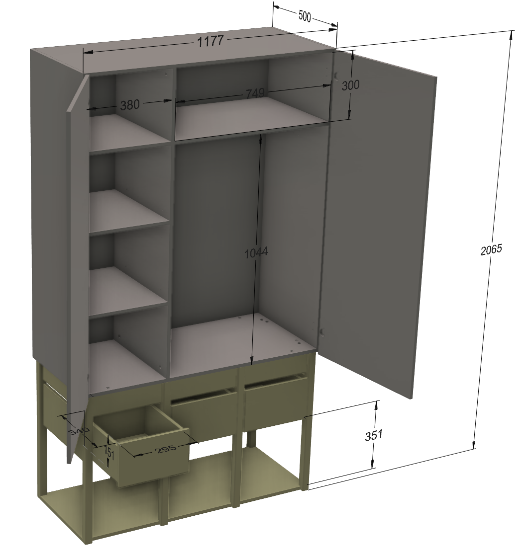 - Przemyślany układ – półki, drążek na ubrania i dodatkowe schowki zapewniają optymalną przestrzeń do przechowywania ubrań, książek czy zabawek.