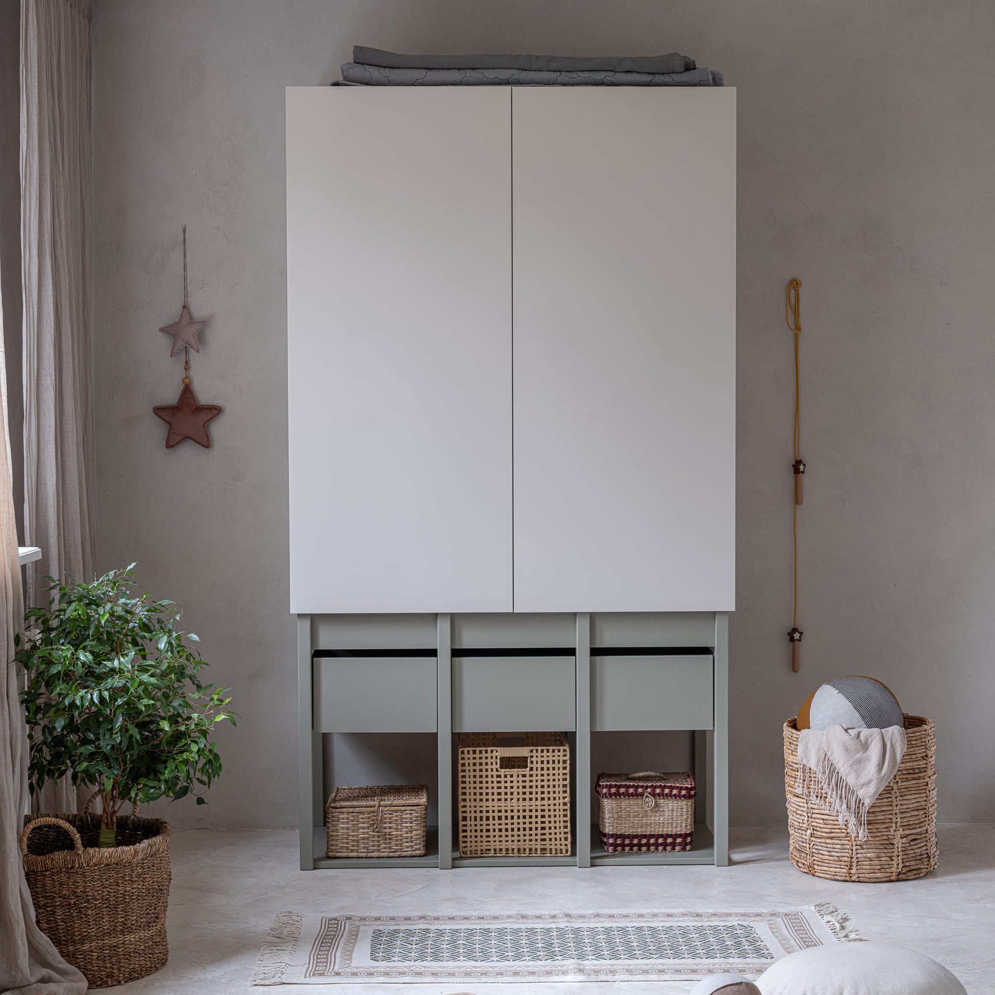 - Nowoczesny design – minimalistyczna forma i uniwersalne kolory sprawiają, że szafa doskonale komponuje się z innymi meblami dziecięcymi.