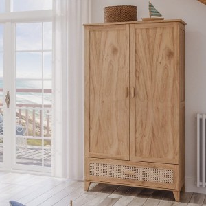 Drewniana szafa dwudrzwiowa do pokoju dziecka z rattanem Nami
