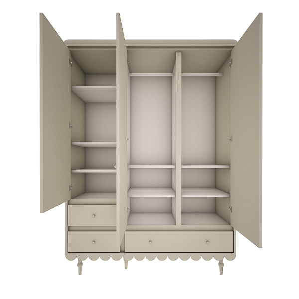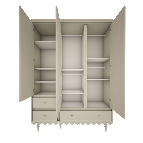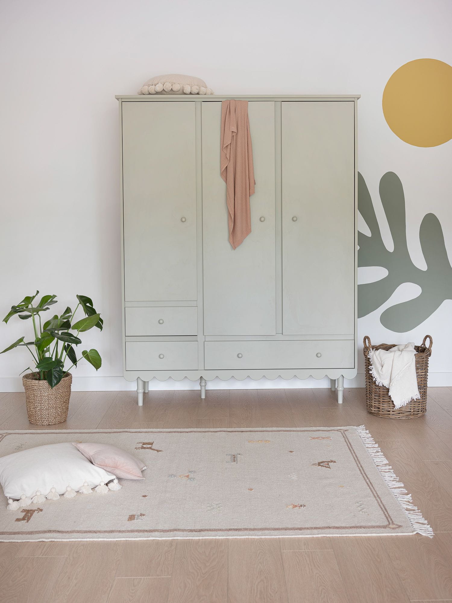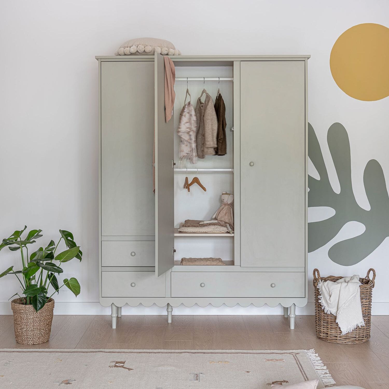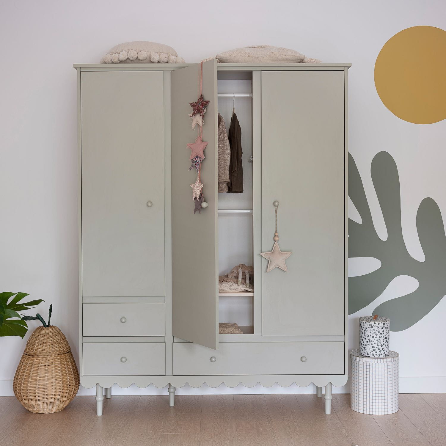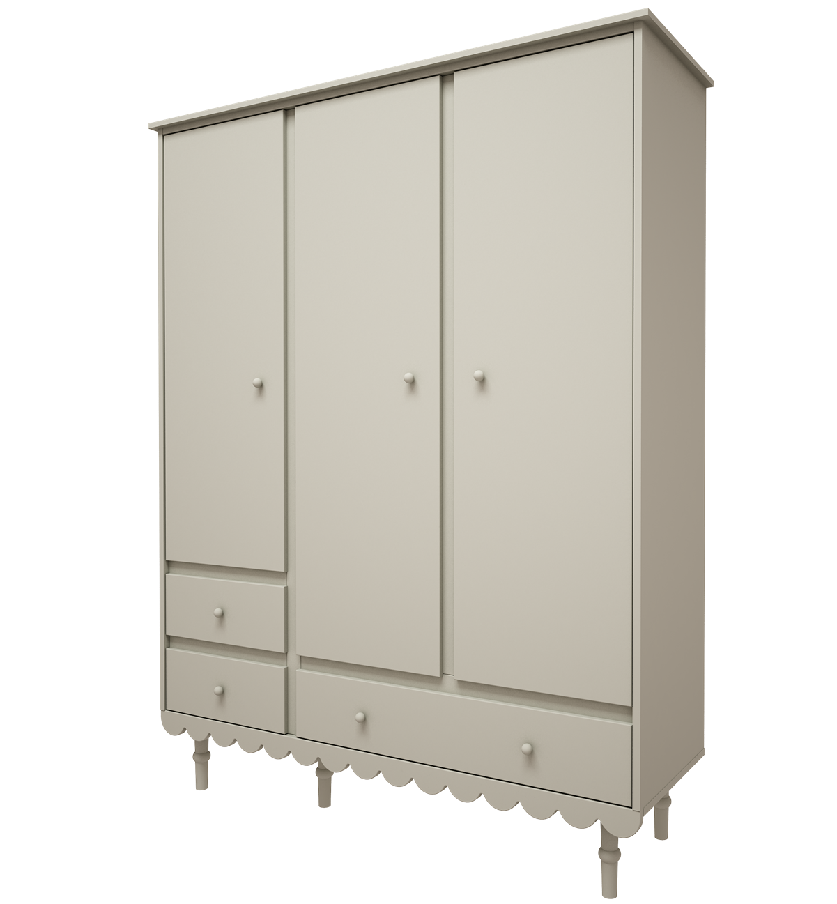 Drewniana szafa trzydrzwiowa Babushka to elegancki mebel w stylu retro, który doskonale łączy estetykę z praktycznością i stanowiąc integralny element kolekcji mebli dziecięcych Babushka.