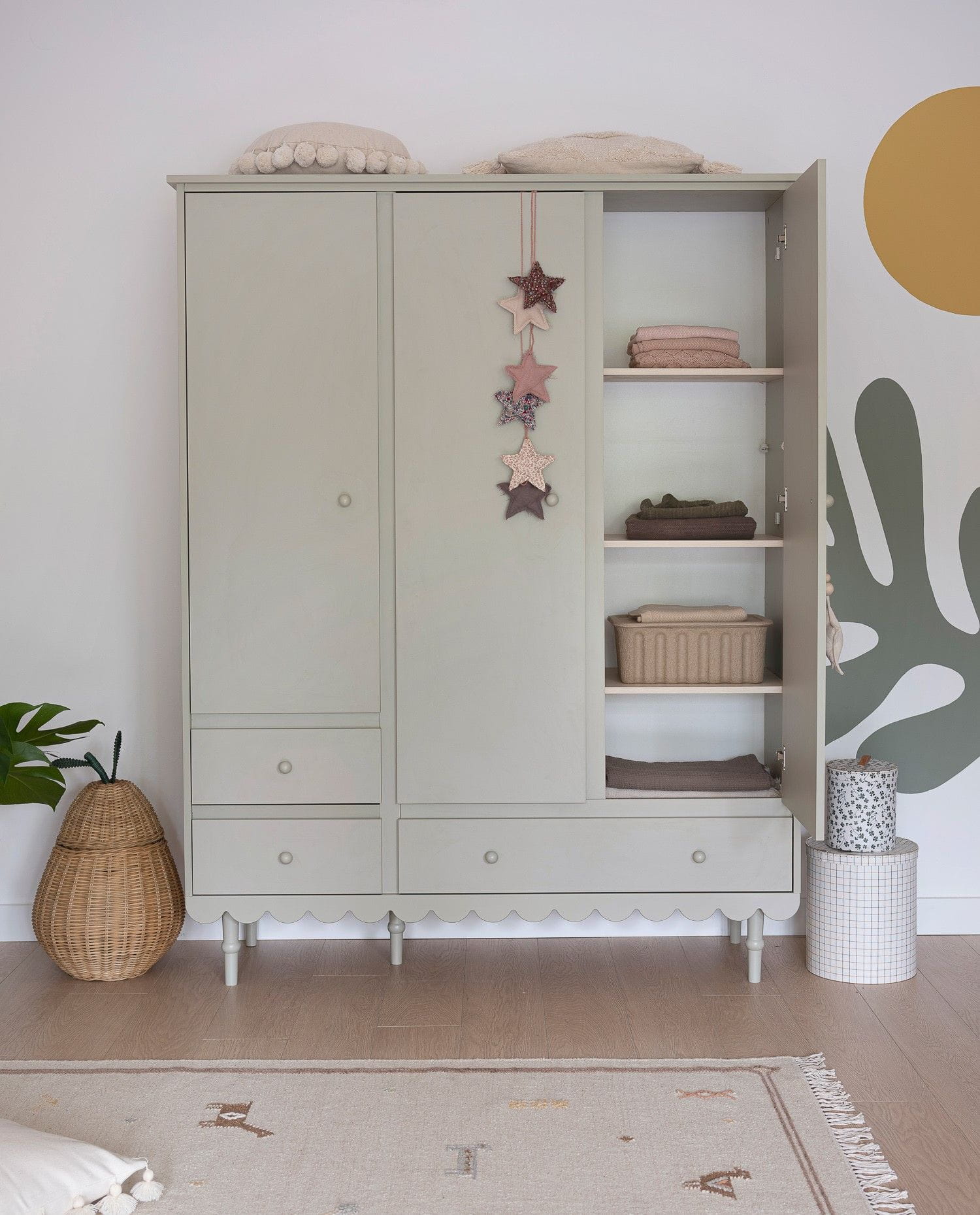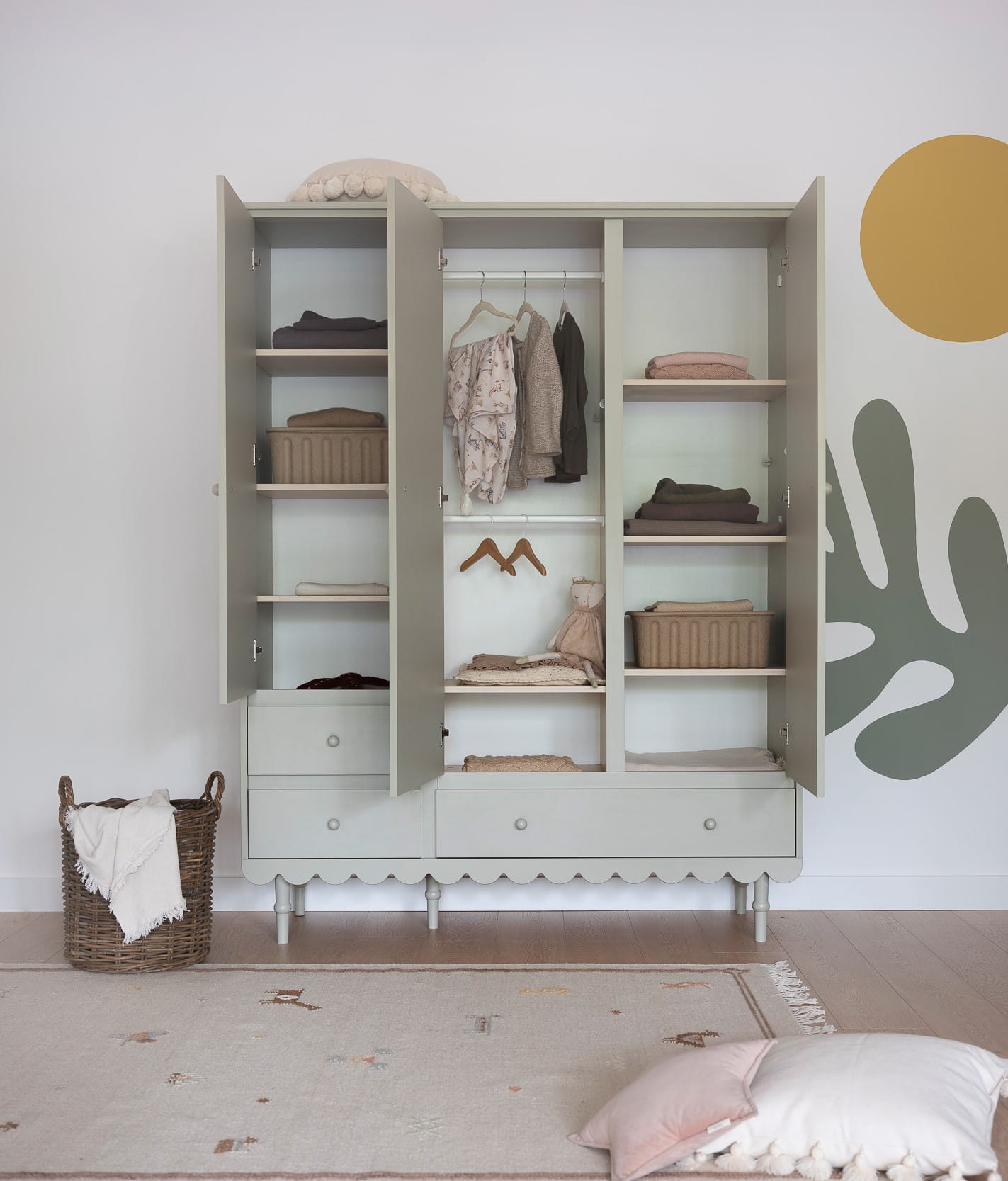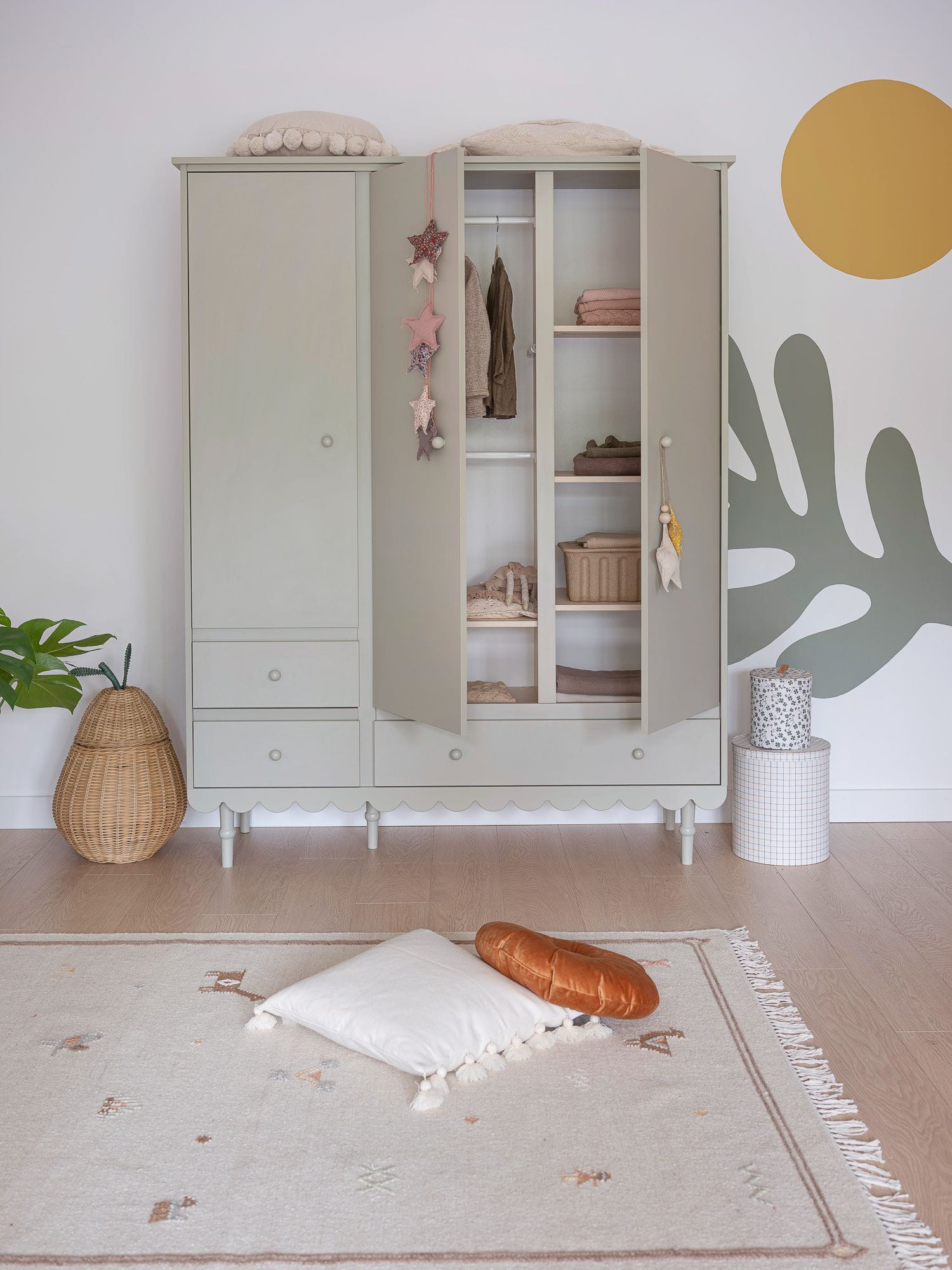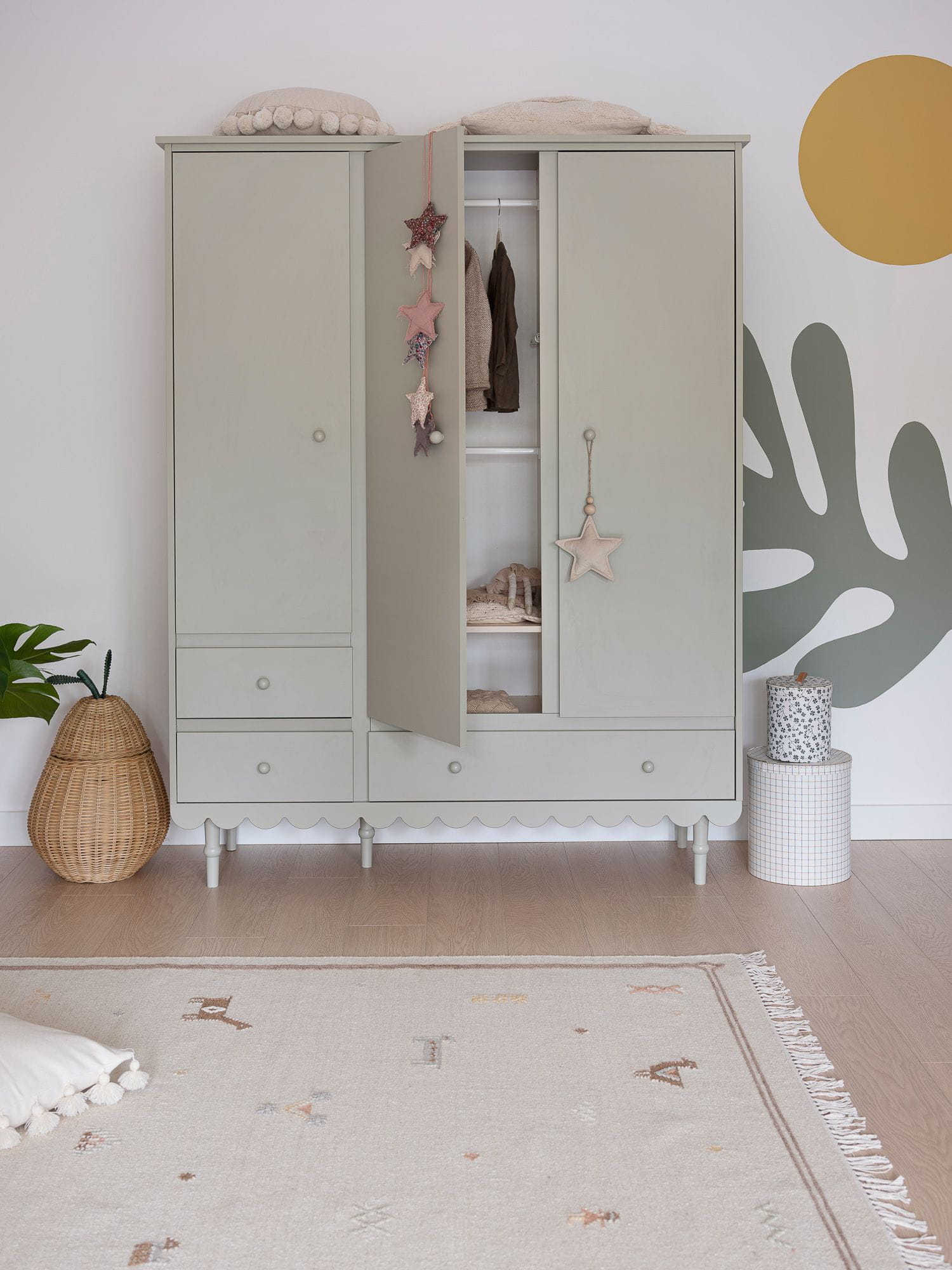 Ta trzydrzwiowa szafa jest częścią popularnej kolekcji mebli dziecięcych Babushka, która obejmuje również: