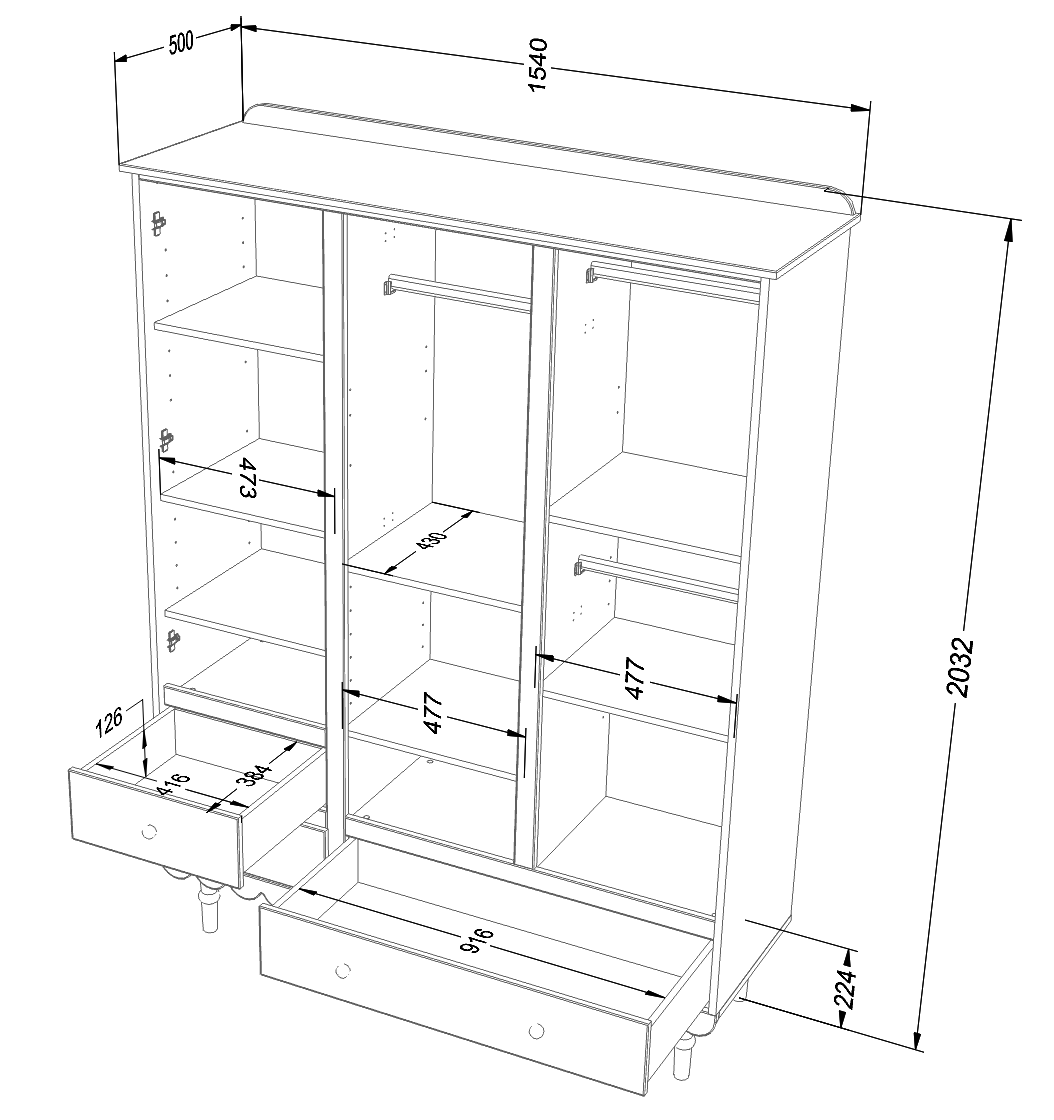 - Półki umożliwiające wygodne przechowywanie złożonych rzeczy.