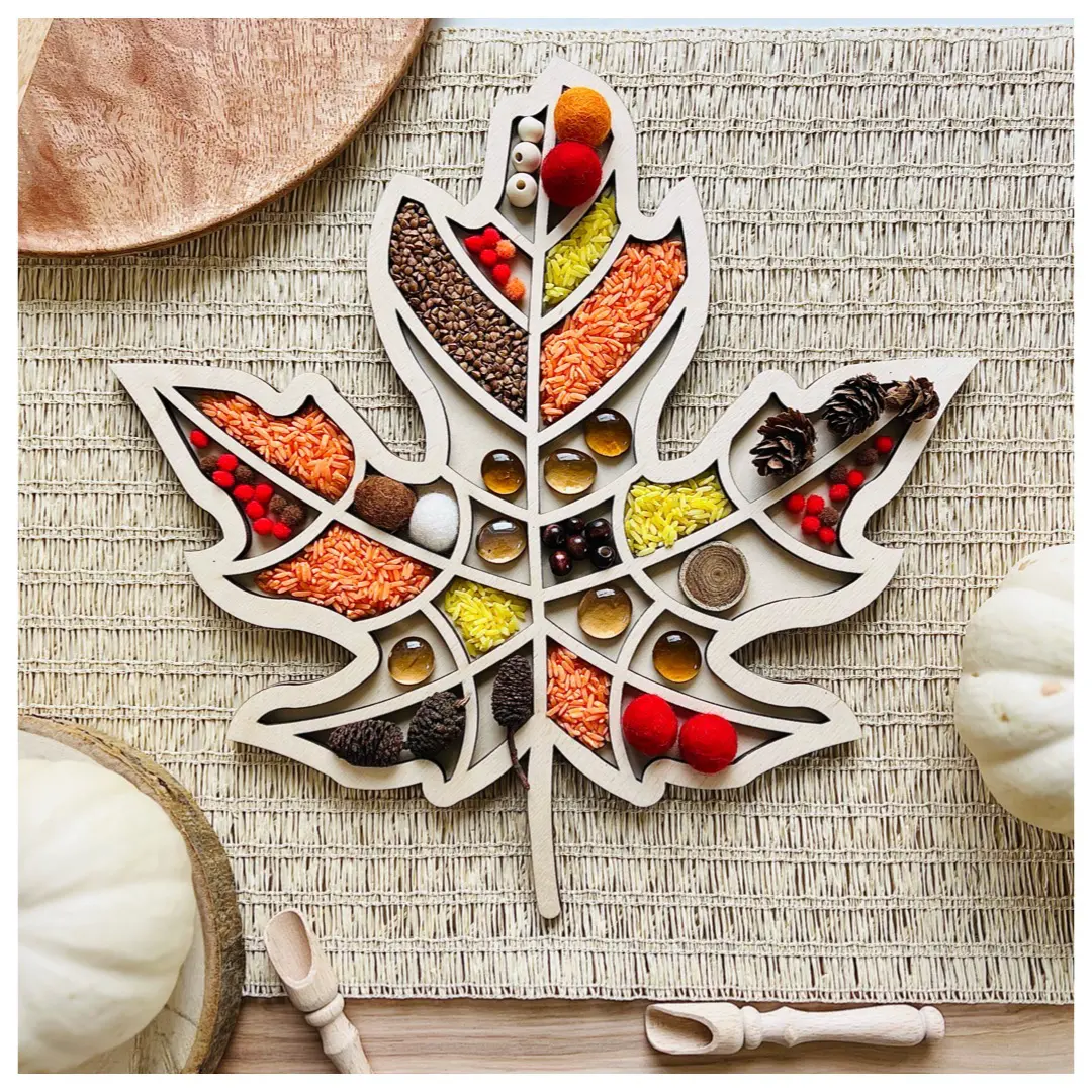 Drewniana wsypywanka sensoryczna dla dzieci Liść Klonu