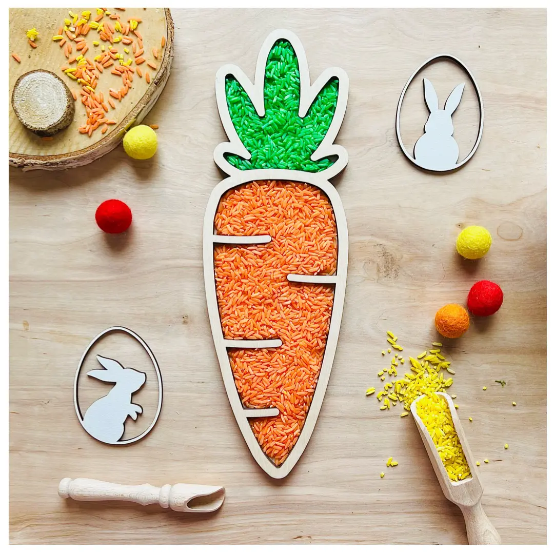 Drewniana wsypywanka sensoryczna dla dzieci Marchewka