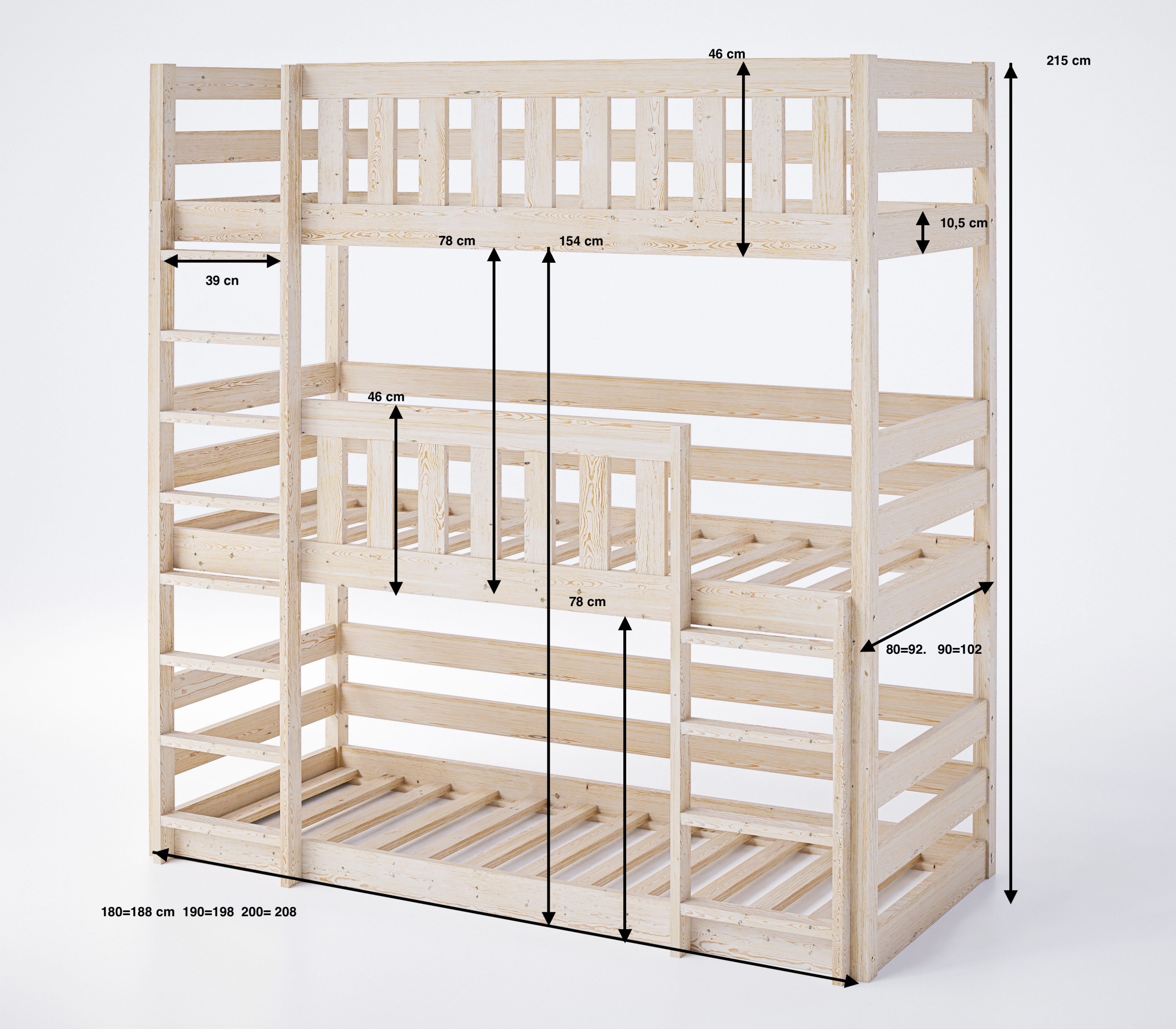 Wymiary: pasuje do materaców 90x200 cm, wysokość między piętrami 78 cm zapewnia komfort użytkowania