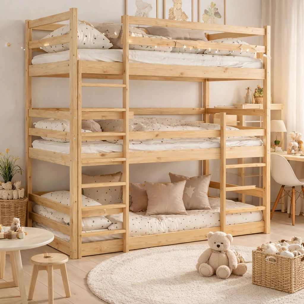 Łóżko piętrowe 3-osobowe drewniane Treko – maksymalne bezpieczeństwo i trwałość