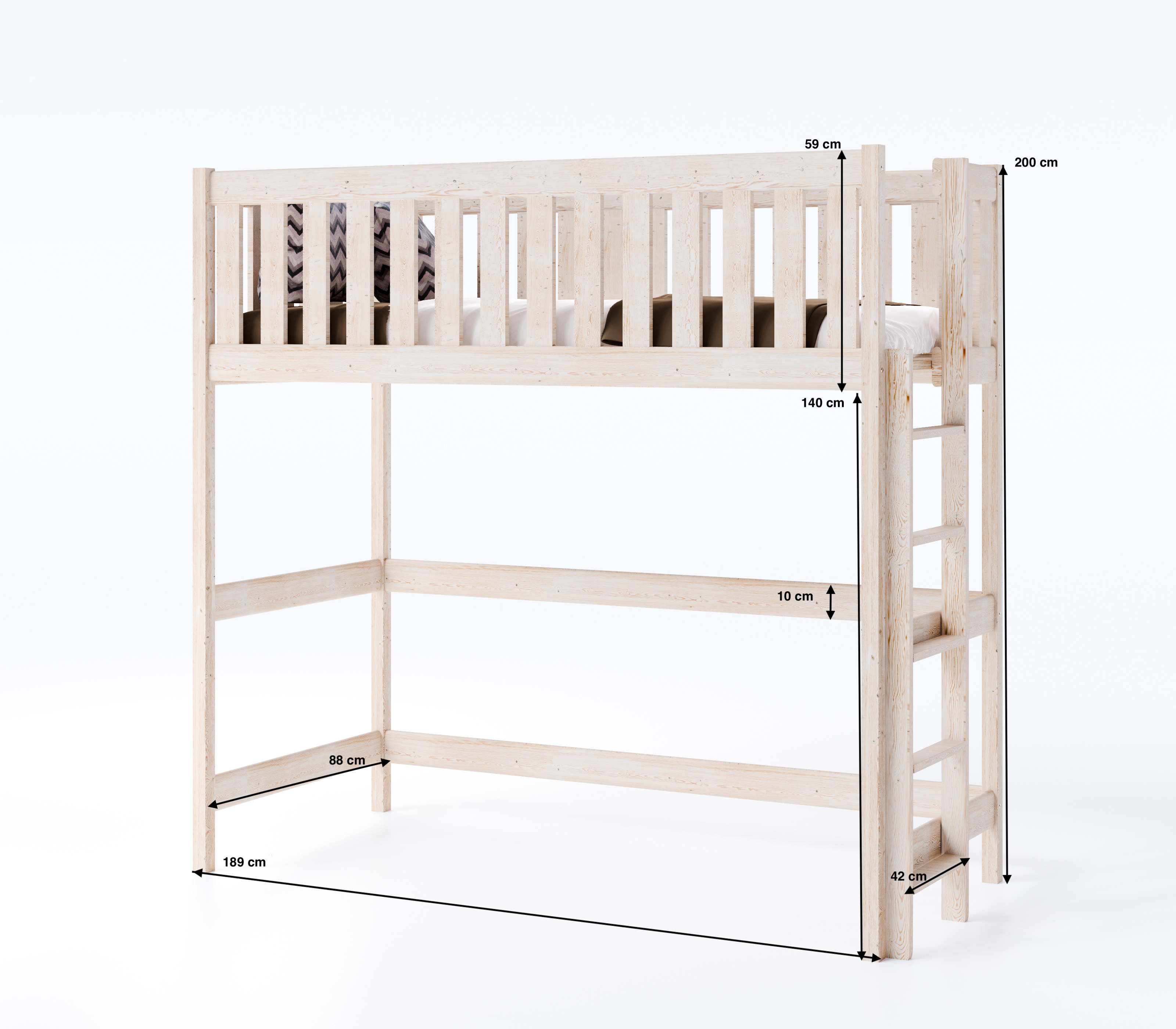 Drewniane Łóżko Piętrowe na antresoli CLOUDY Plus- różne kolory i rozmiary