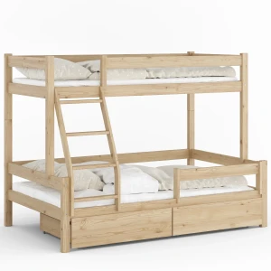 Łóżko piętrowe GARDO to solidne i bezpieczne łóżko dziecięce z litego drewna sosnowego, stworzone z myślą o codziennym komforcie i intensywnym użytkowaniu. Dzięki wysokiej nośności, praktycznym szufladom oraz dopracowanej konstrukcji jest idealnym wyborem do pokoju rodzeństwa.