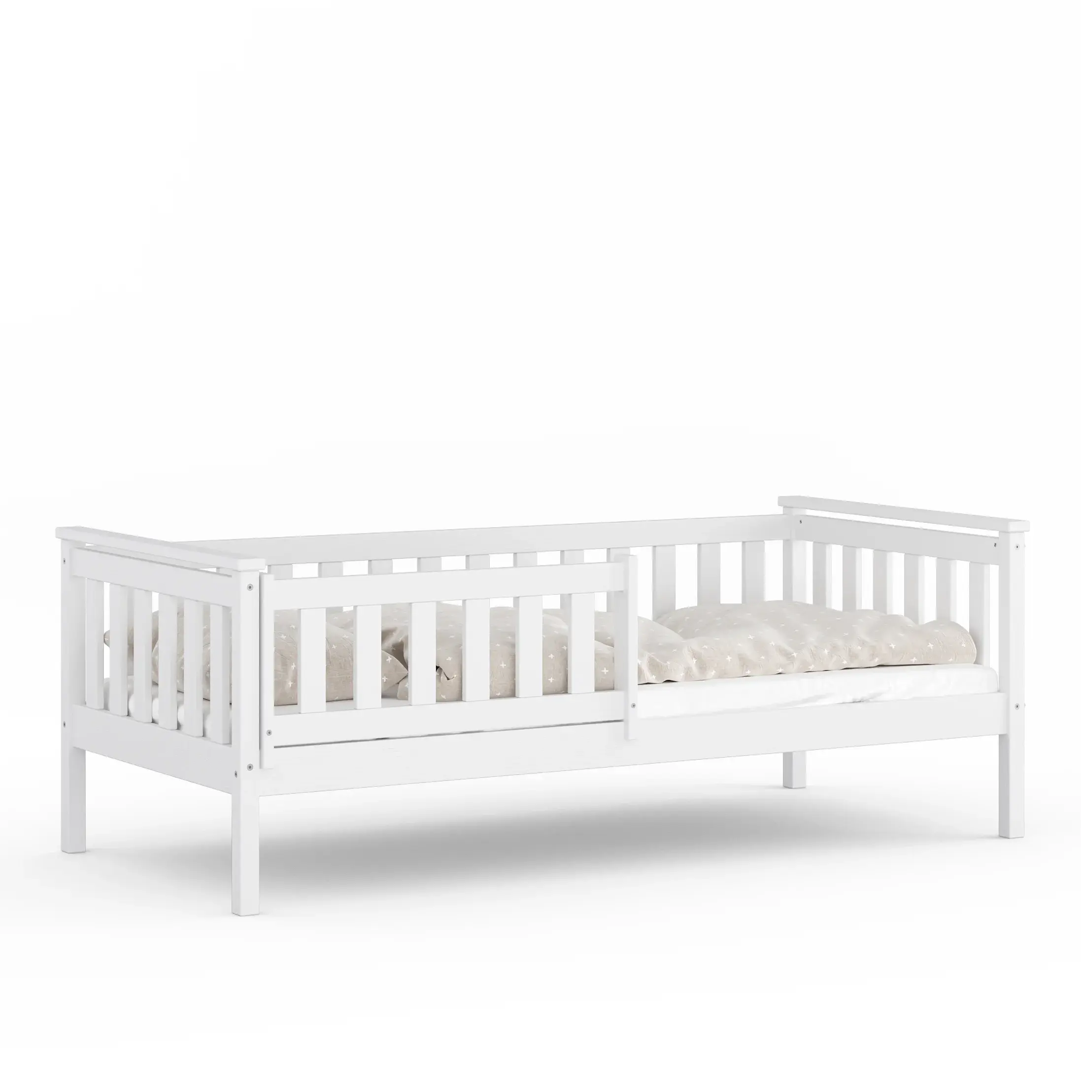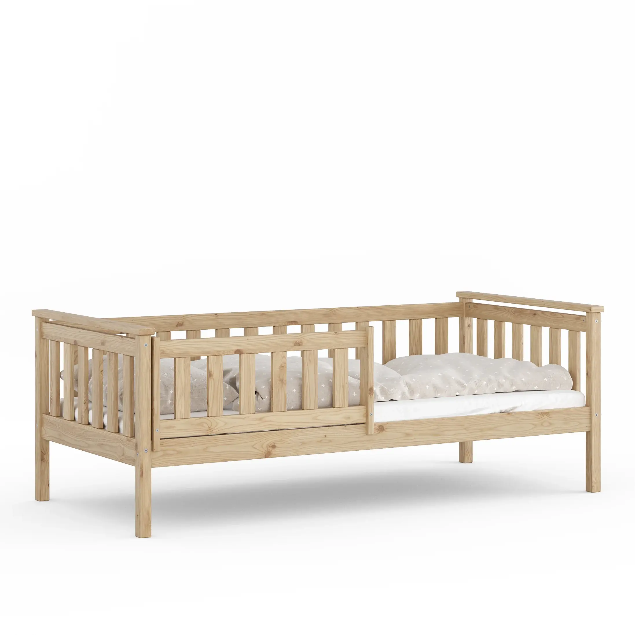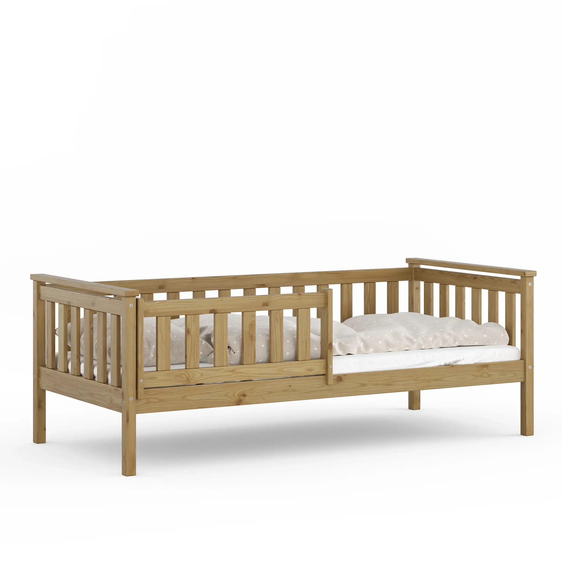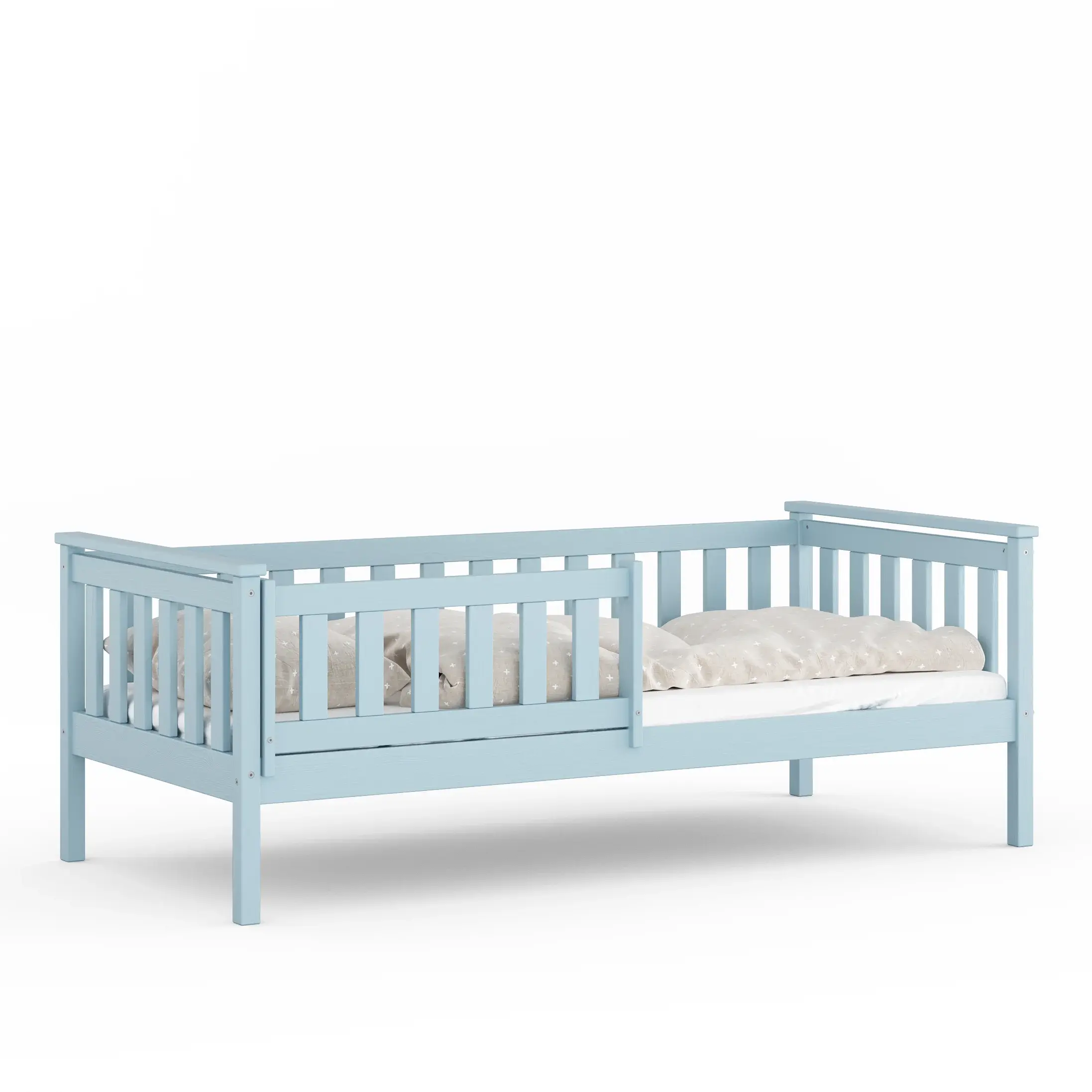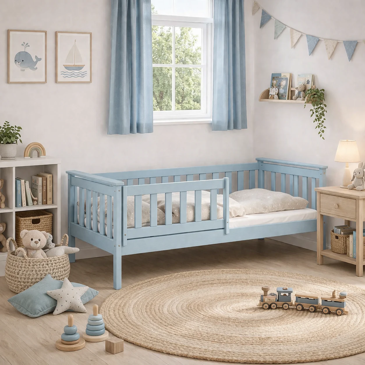 Drewniane łóżko pojedyncze Sam – bezpieczne łóżko dziecięce z barierką, różne kolory i rozmiary