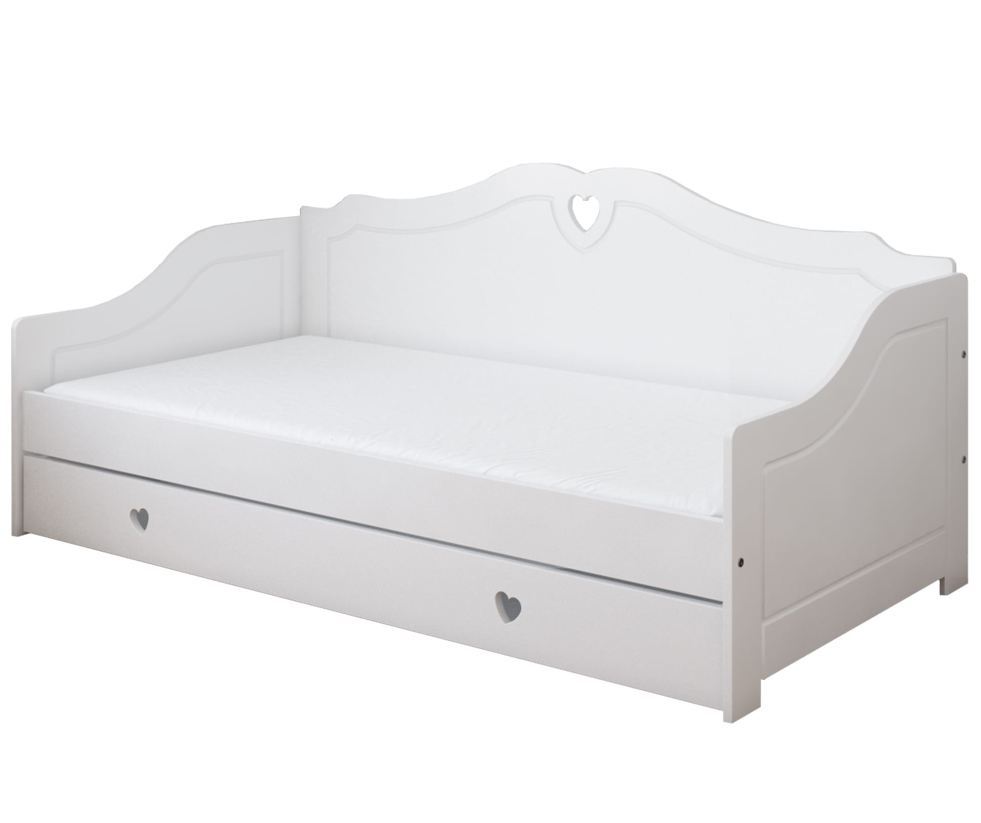 Drewniane łóżko dziecięce z funkcja sofy to idealne rozwiązanie do pokoju każdej dziewczynki. Stanowi uzupełnienie wystroju wnętrza z kolekcją mebli dla dzieci Love.