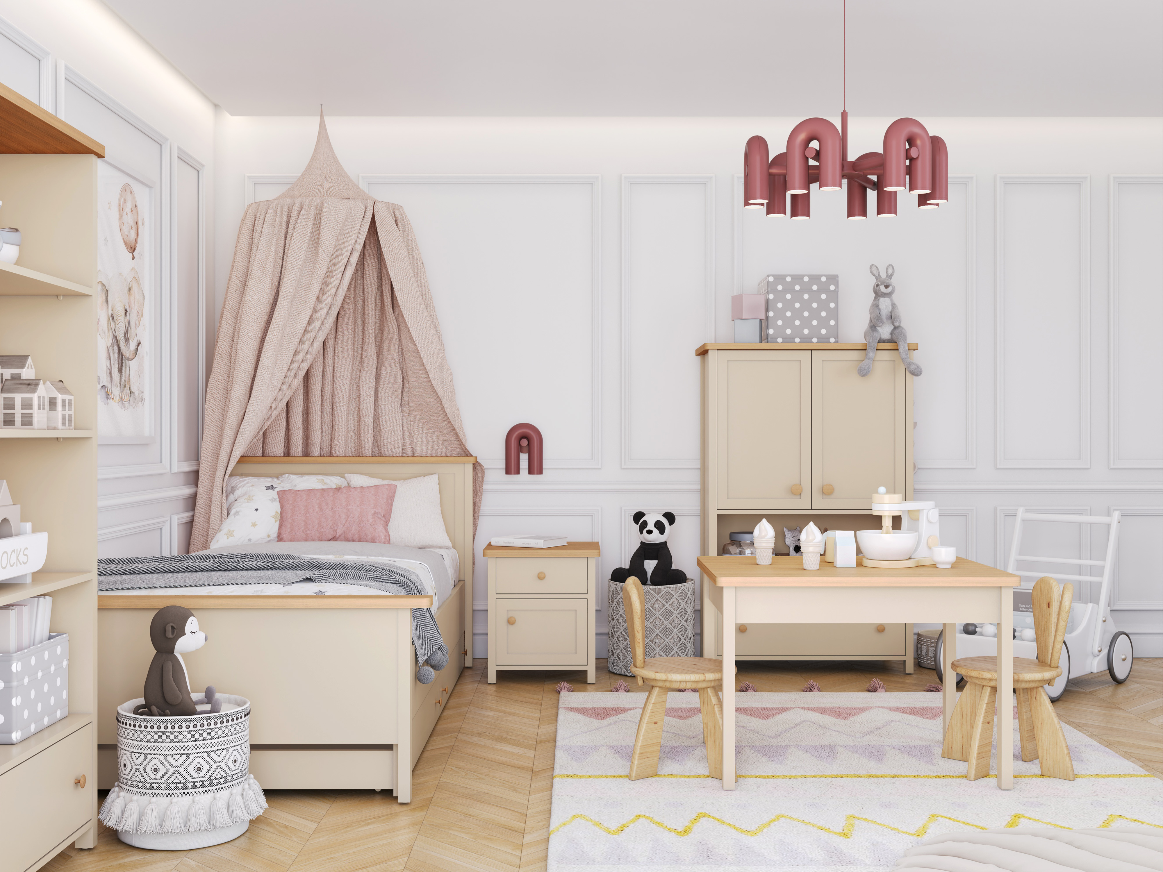 Naturalne wykończenie sprzyja skupieniu i dobrze komponuje się z innymi meblami dziecięcymi z kolekcji Story.