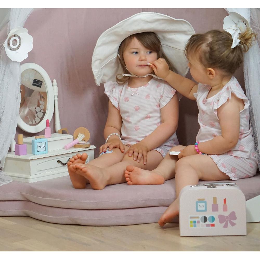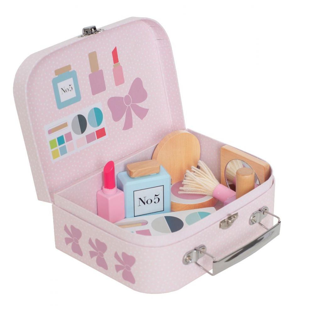 Drewniane kosmetyki do makijażu w stylowej kosmetyczne to niezbędnik prawdziwej damy. Praktyczny, funkcjonalny prezent dla małej wizażystki, która uwielbia się upiększać i naśladować role dorosłych. Dzięki naszym kosmetykom, efekt makijażu jest niezwykle naturalny, i na pewno się nie rozmazuje.