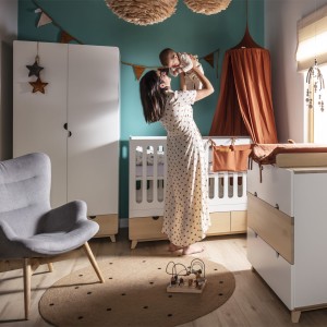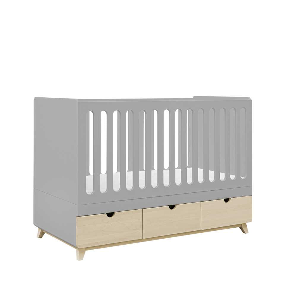 Łóżeczko dodatkowo wyposażone jest w trzy funkcjonalne i pojemne szuflady na przechowywanie.