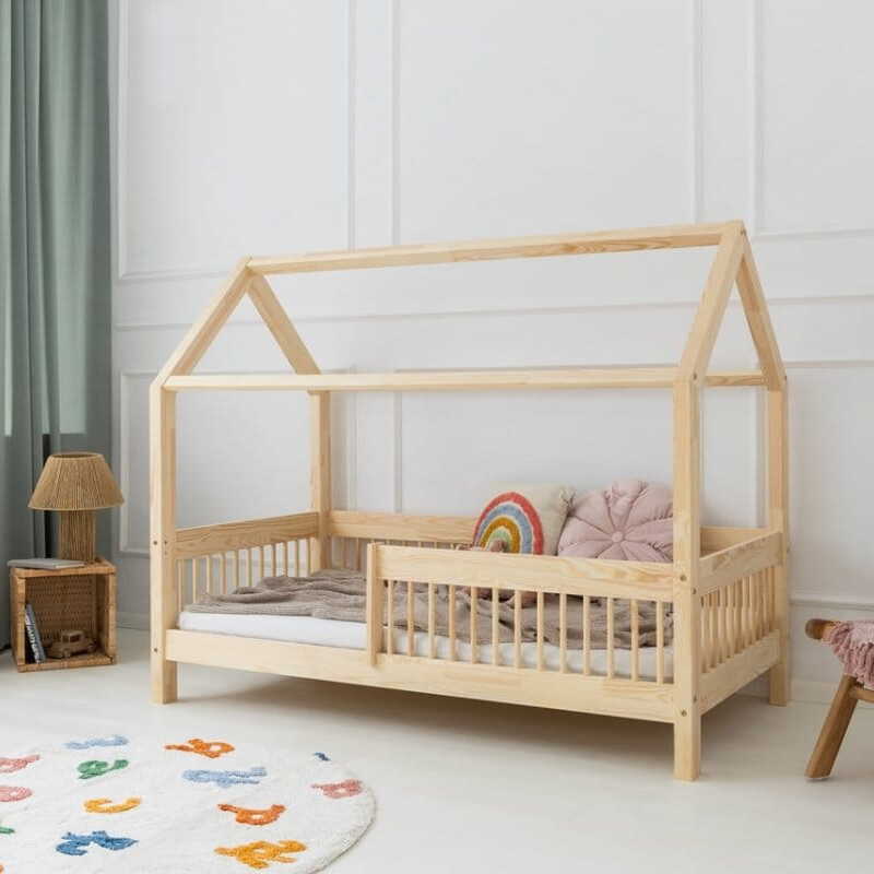 Stwórz przytulny i bezpieczny pokój dziecięcy dzięki łóżku domek Adeko z barierkami. Wykonane w 100% z naturalnego drewna sosnowego, łóżko jest ekologiczne, trwałe i przyjazne dziecku. Idealnie wpisuje się w styl skandynawski, łącząc prostotę, funkcjonalność i elegancką estetykę.