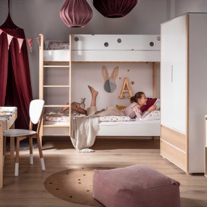 Dzięki podwójnej konstrukcji to łóżko piętrowe maksymalnie wykorzystuje przestrzeń w pokoju dziecka, zapewniając miejsce do spania dla dwojga. A kiedy dzieci podrosną – łóżko można rozdzielić na dwa osobne łóżka pojedyncze.