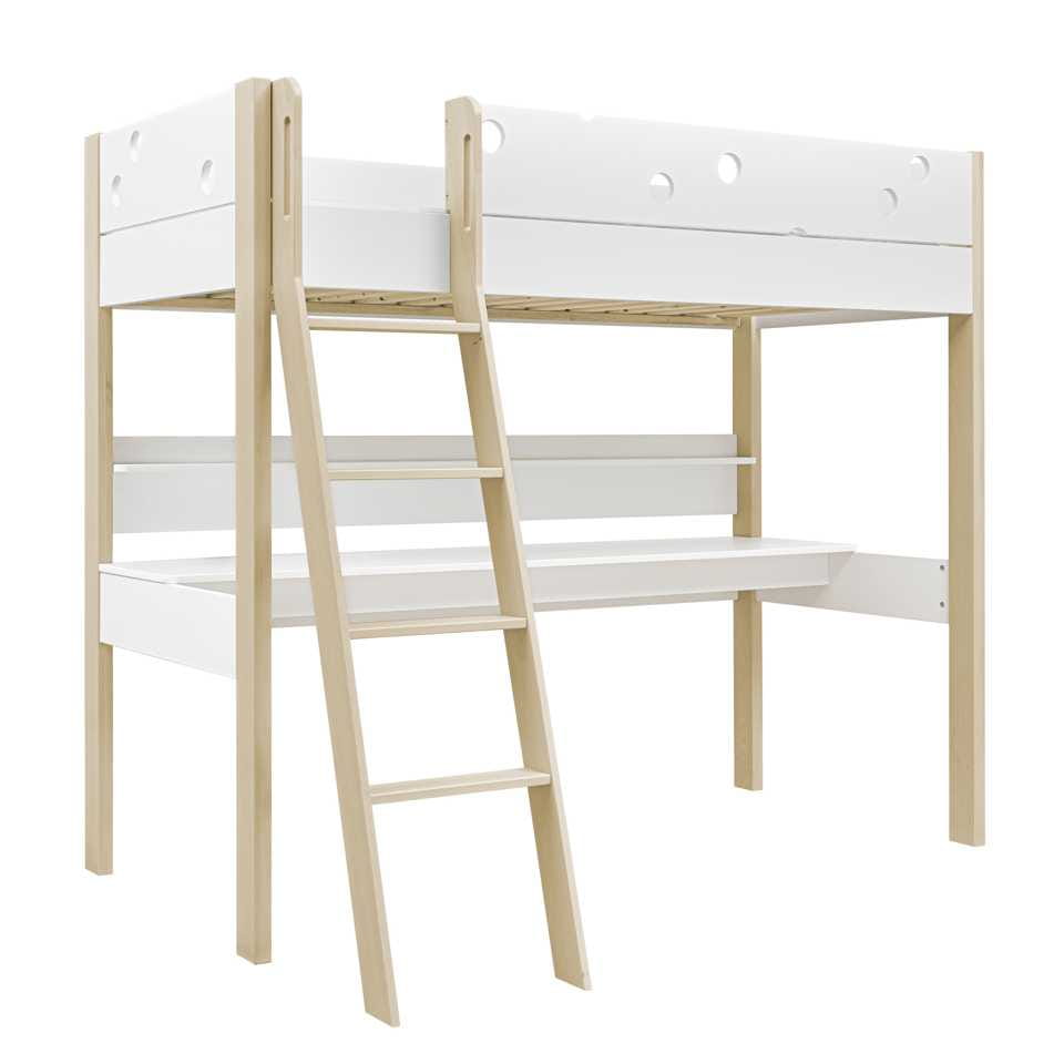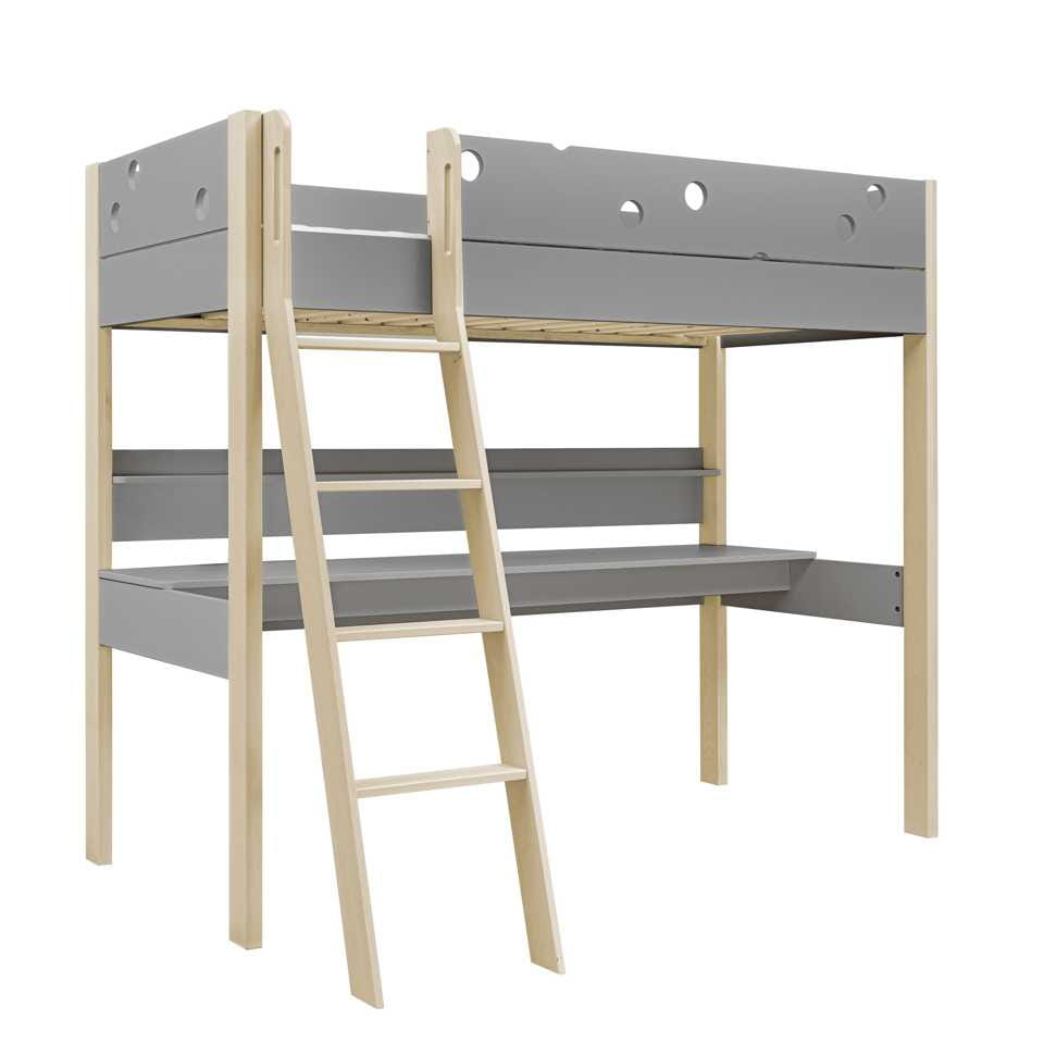 Drewniane łóżko wysokie z biurkiem i półką dla dzieci Funflex
