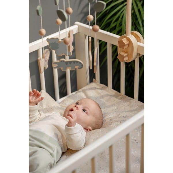 Urocze drewniane mobile zwierzęta safari to idealny element dekoracyjny do pokoju zarówno niemowlaka, jak i przedszkolaka. Wykonane z wysokiej jakości drewna, w stonowanej kolorystyce z białymi kropelkami deszczu, stanowią piękny i subtelny dodatek, który możesz zawiesić w dowolnym miejscu dziecięcego pokoju. Produkt szwedzkiej marki Jabadabado, zapakowany w eleganckie pudełko, sprawdzi się również jako wyjątkowy prezent.