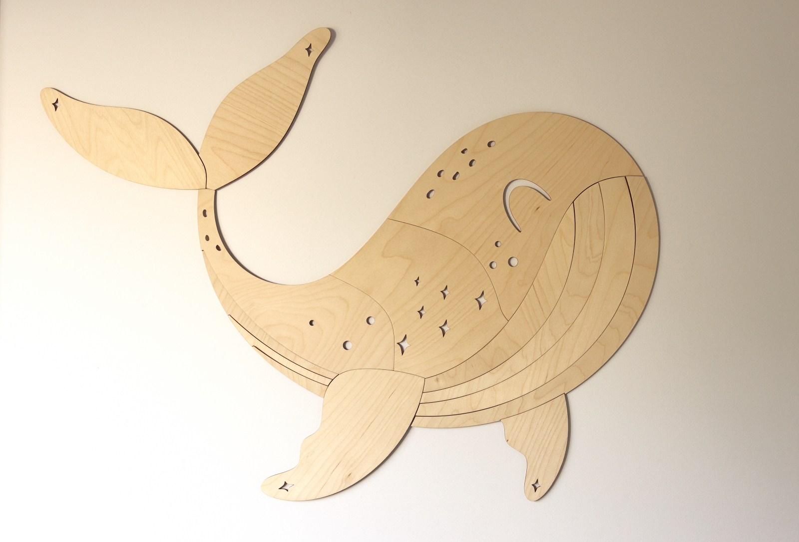 Drewniany Wieloryb – Dekoracja do Pokoju z Motywem Oceanu