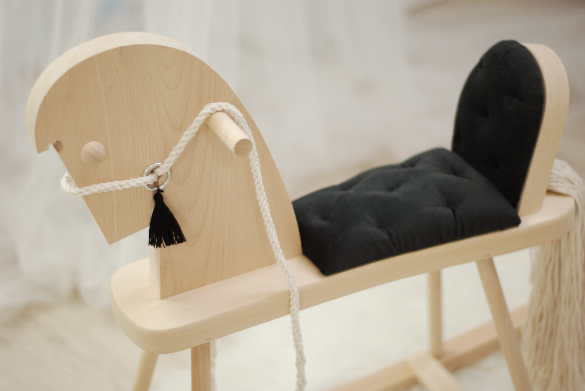 Do wyboru masz dowolny kolor siodełka i lejców – dzięki temu każdy konik staje się unikatowy i dopasowany do gustu dziecka oraz wystroju pokoju.
