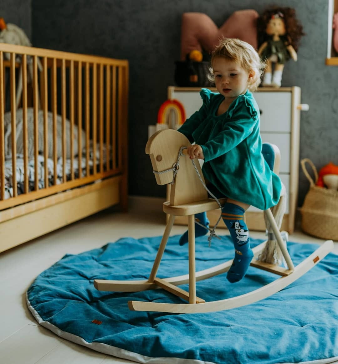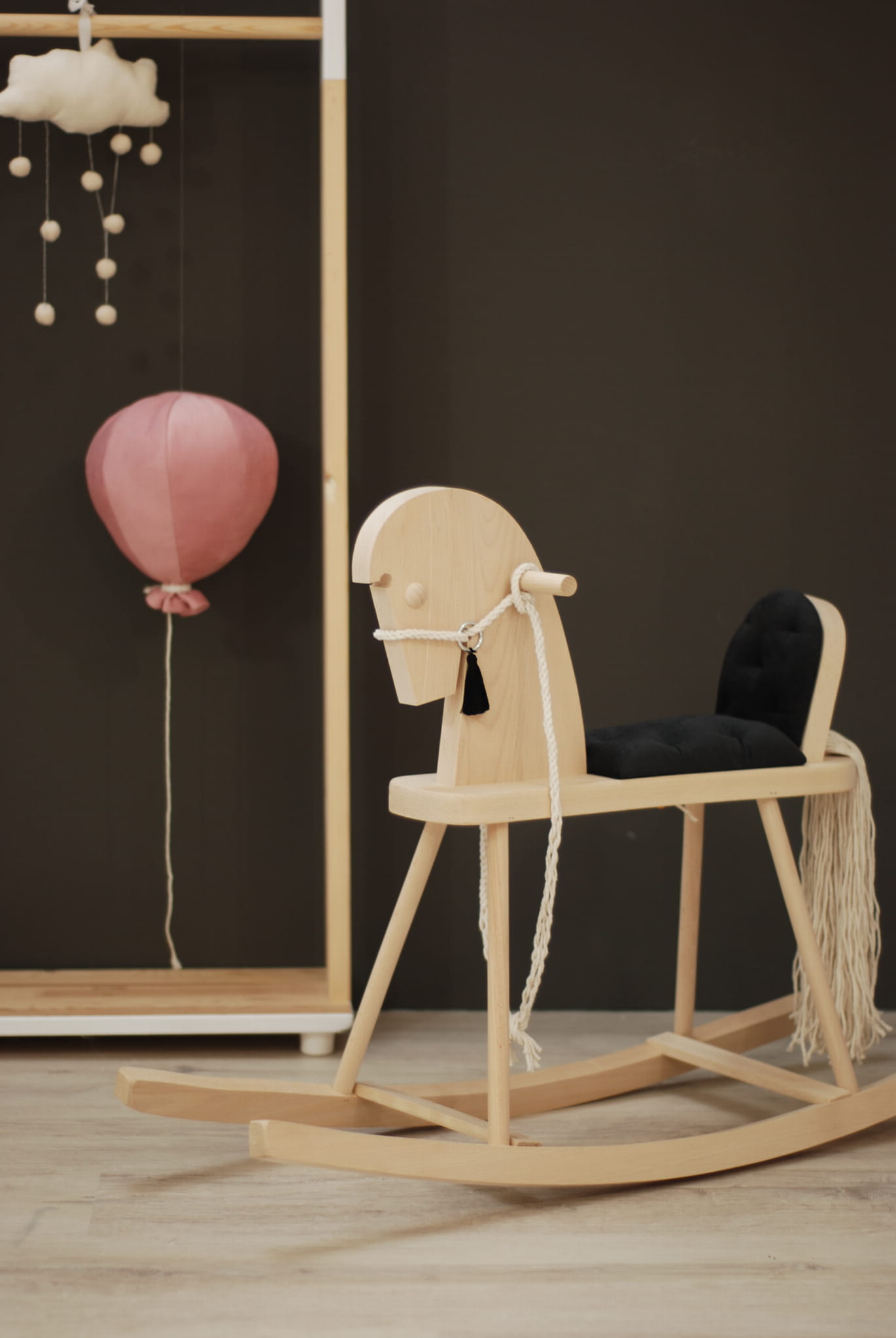 Naturalny drewniany konik na biegunach to ponadczasowy symbol dzieciństwa. Prosty, elegancki i wykonany z najwyższą starannością, staje się nie tylko ulubioną zabawką malucha, ale również piękną dekoracją w pokoju dziecka.
